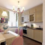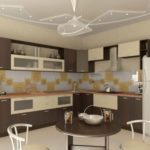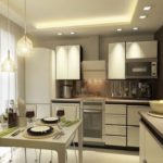 Importante! No cargue su cocina con elementos de araña excesivos. Si la habitación en el departamento es pequeña, es mejor dividir la iluminación en varias zonas, esto ampliará el espacio visual y le dará estilo.