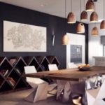 Además de un candelabro, puede agregar focos o elegir un aplique de moda, se verá especialmente hermoso en la pared, sobre la barra del bar.