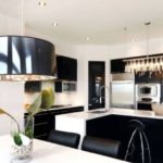 Sin lugar a dudas, los accesorios deben encajar armoniosamente en el diseño general de la cocina. Si se trata de un clásico, los accesorios de iluminación deben hacerse en un estilo clásico, si es un estilo de alta tecnología, entonces puede elegir una opción más audaz.