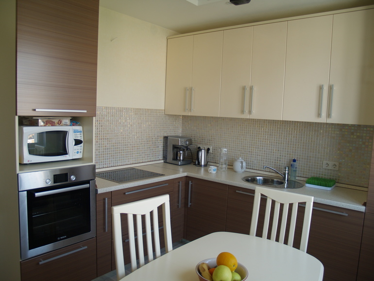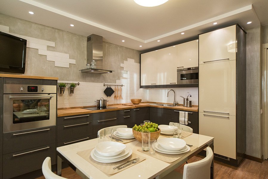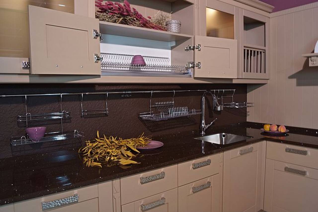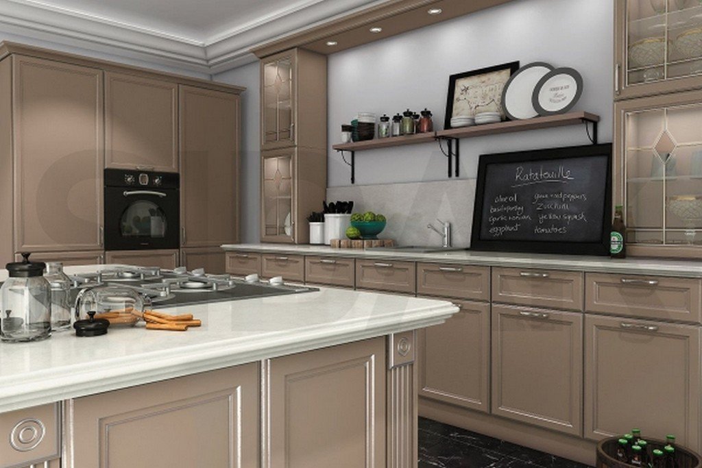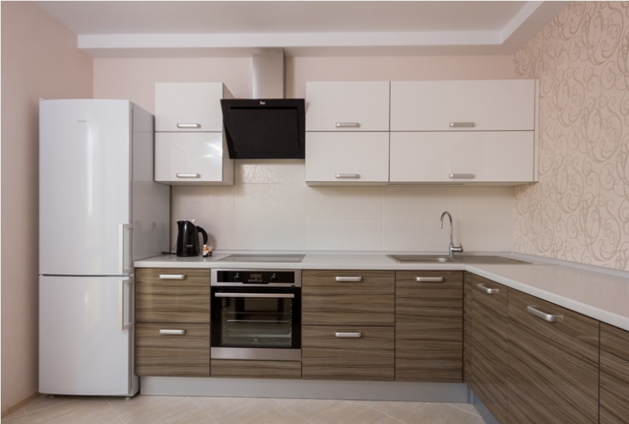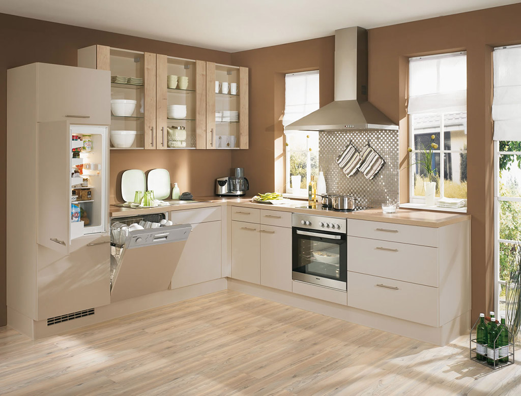 Las cocinas beige son las más compradas. De hecho, el beige no es tan afilado como el blanco, es más fácil de cuidar, pero se ve fresco, limpio y suave. Ideal para cocinas pequeñas.