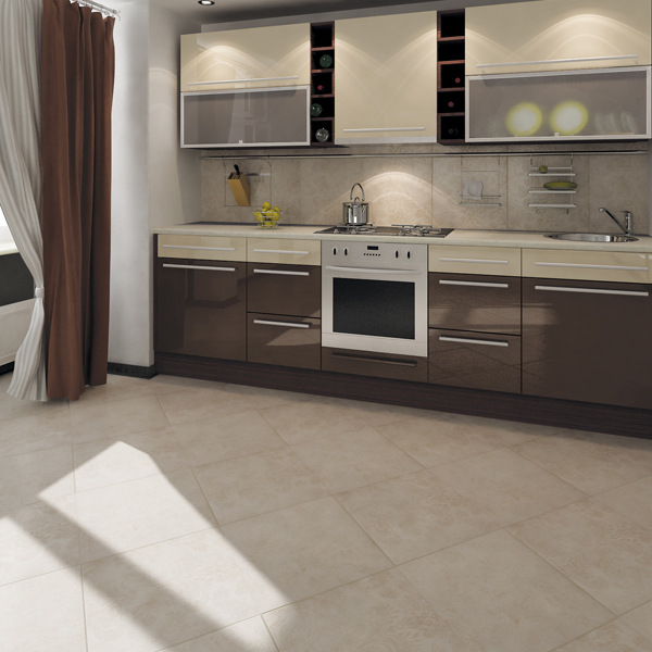 Independientemente del material del piso (linóleo, laminado, baldosas, PVC o cerámica, corcho, autonivelante o combinado), hay dos opciones para cocinas marrones: un piso de color crema claro u oscuro como el chocolate negro.