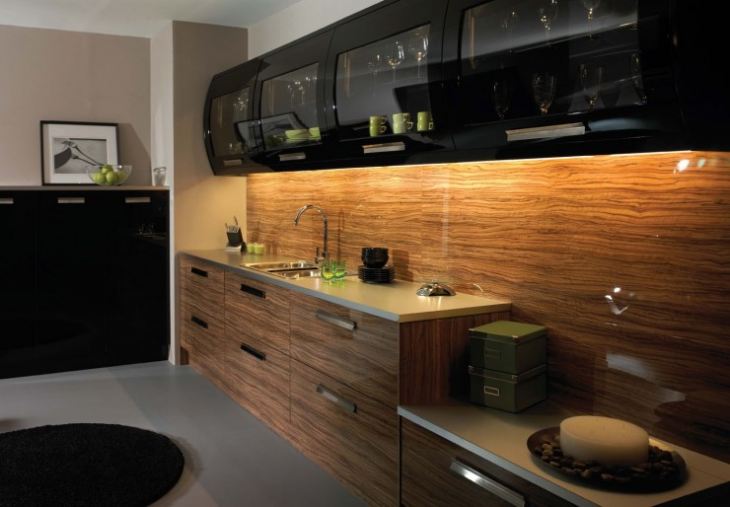 Los muebles con fachadas de madera de color chocolate se ven naturales y se adaptan a cualquier estilo rústico.