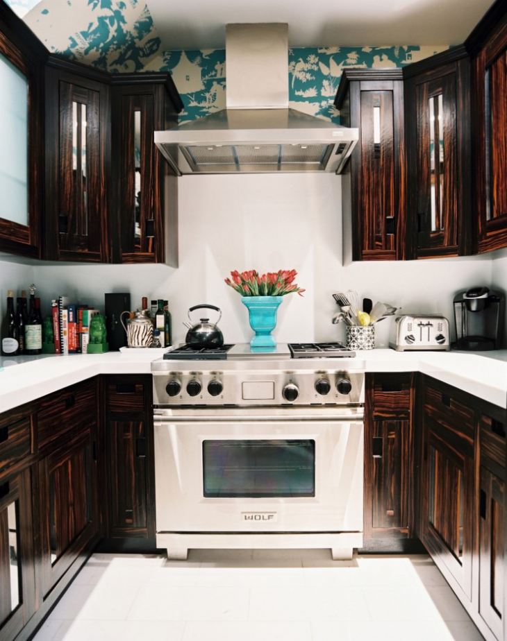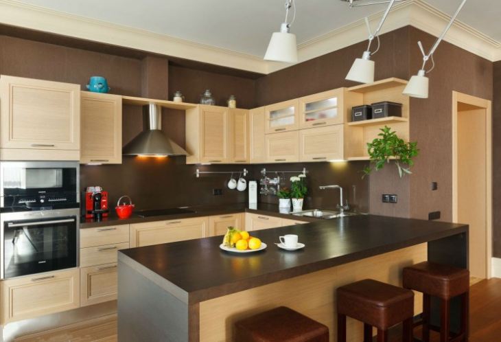 Usando color chocolate en el interior de la cocina, puede implementar decisiones de diseño bastante audaces