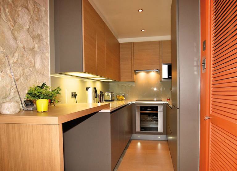 Equipar una cocina de este tipo no requiere mucho espacio.
