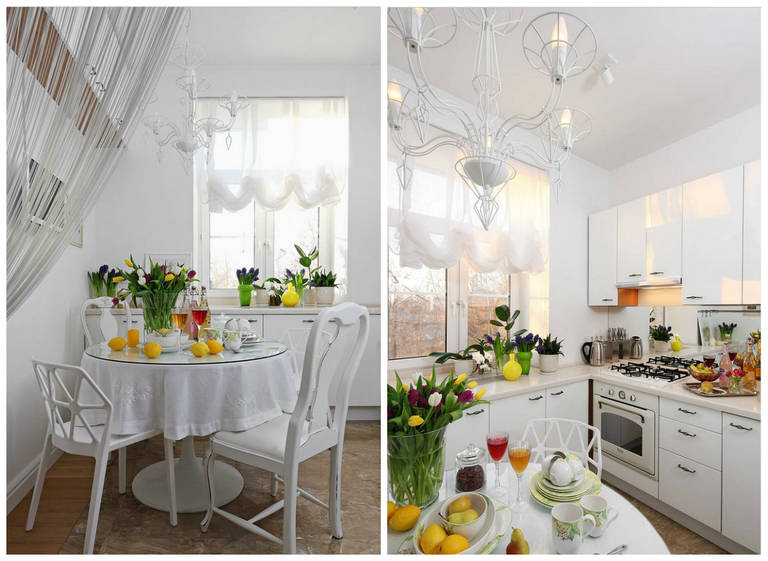 Lo principal es organizar correctamente los muebles y electrodomésticos, al tiempo que ahorra un espacio precioso. A veces, la solución al problema puede ser expandir el tamaño de la pequeña cocina debido a las habitaciones vecinas de la habitación.