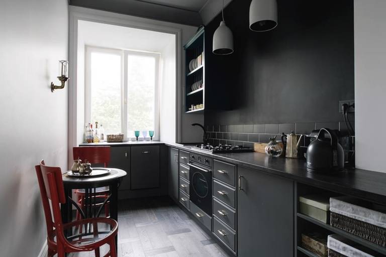 La cocina cerrada ofrece una gran libertad en la elección de muebles y electrodomésticos. Puede centrarse en un estilo de diseño completamente diferente, diferente de la sala de estar.