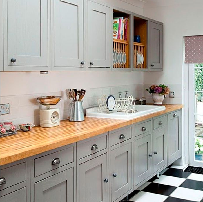 - Cómo elegir el color del delantal para un juego de cocina gris y con qué color se debe combinar