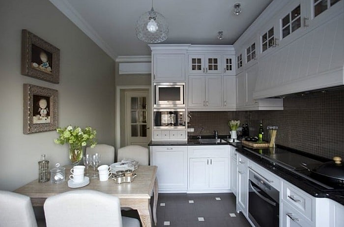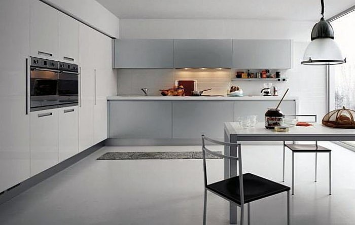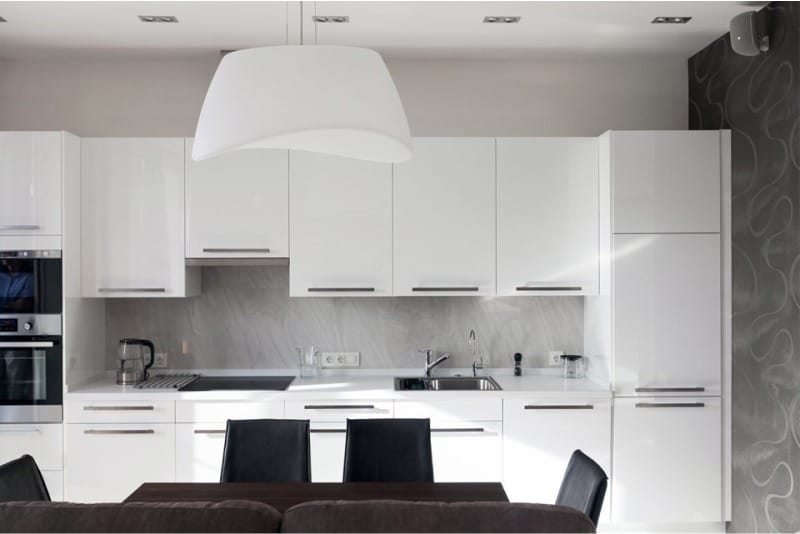 Las pieles originales de la cocina más bella de color blanco grisáceo sorprenden con su variedad, pero las siguientes opciones son las más populares: