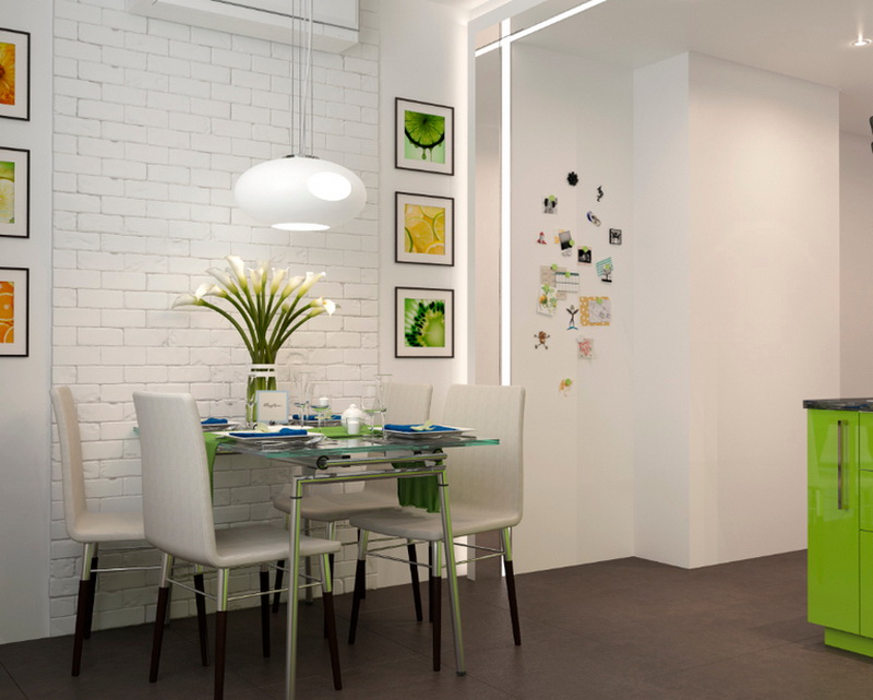 Para que la cocina sea creativa, trate de revivir el interior con colores contrastantes, por ejemplo, en muebles.