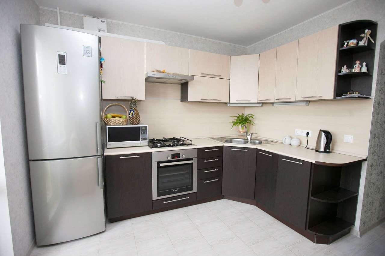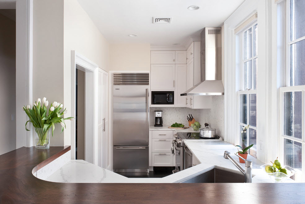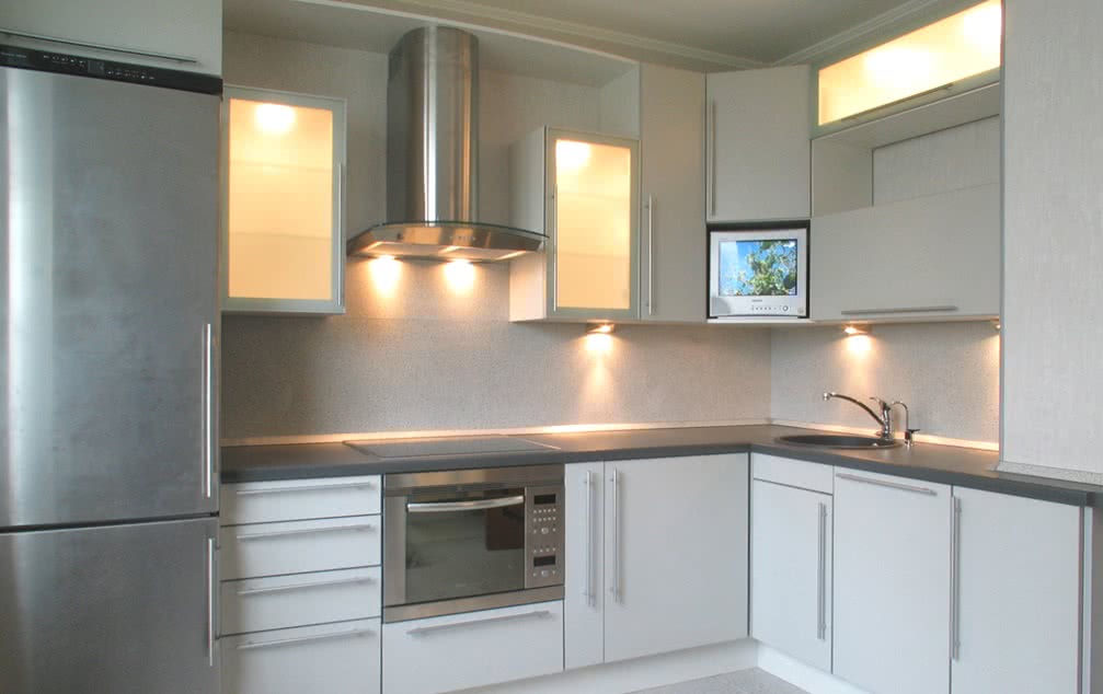 En la mayoría de los apartamentos, cocinas pequeñas, para no ocupar mucho espacio, vale la pena elegir tamaños pequeños.