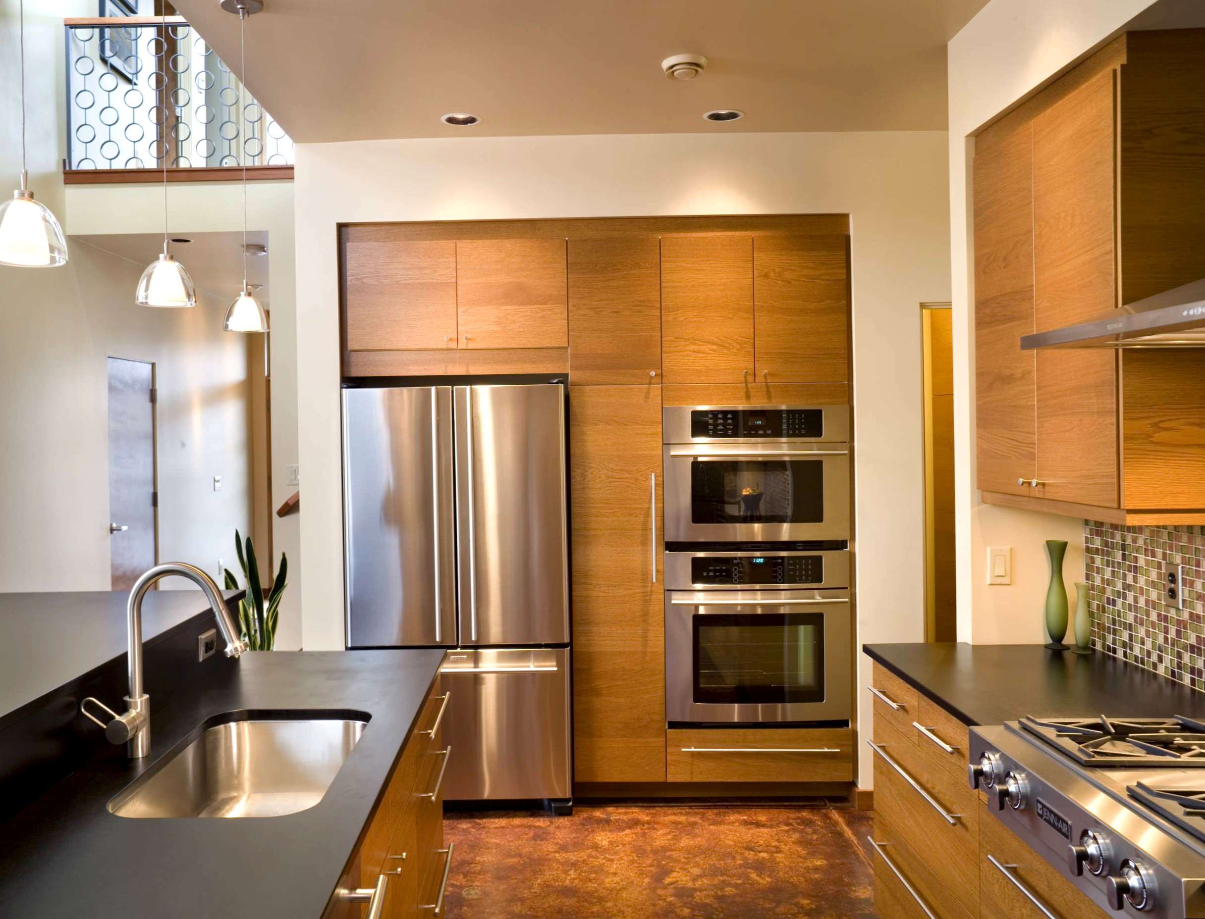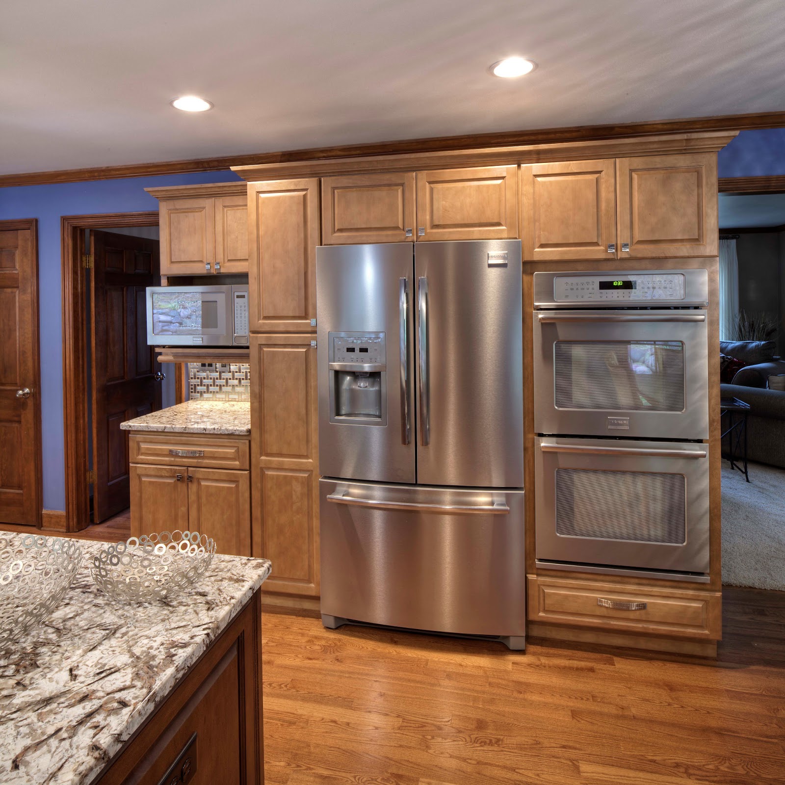 - Refrigeradores de colores en el interior de la cocina con una foto.