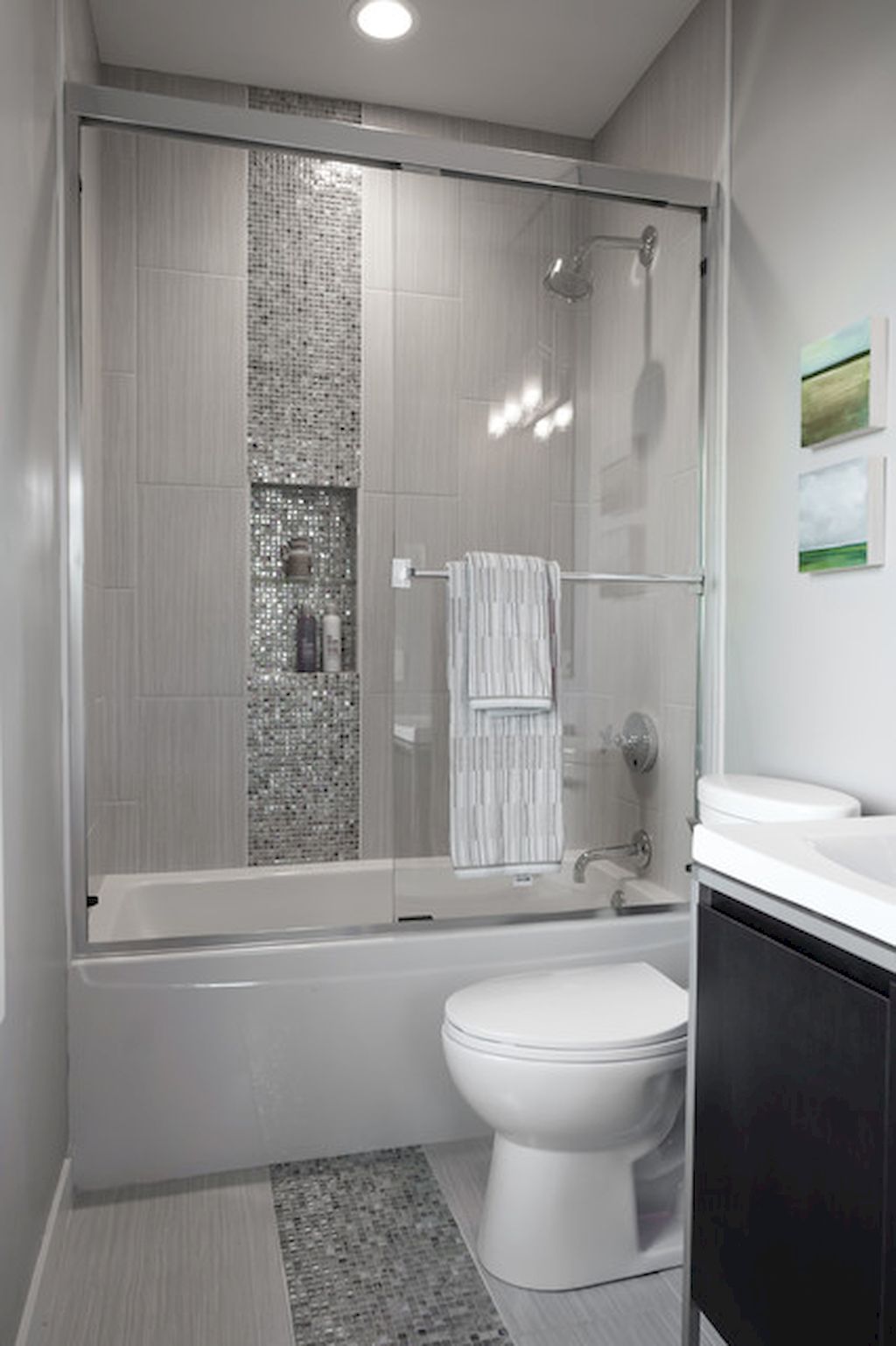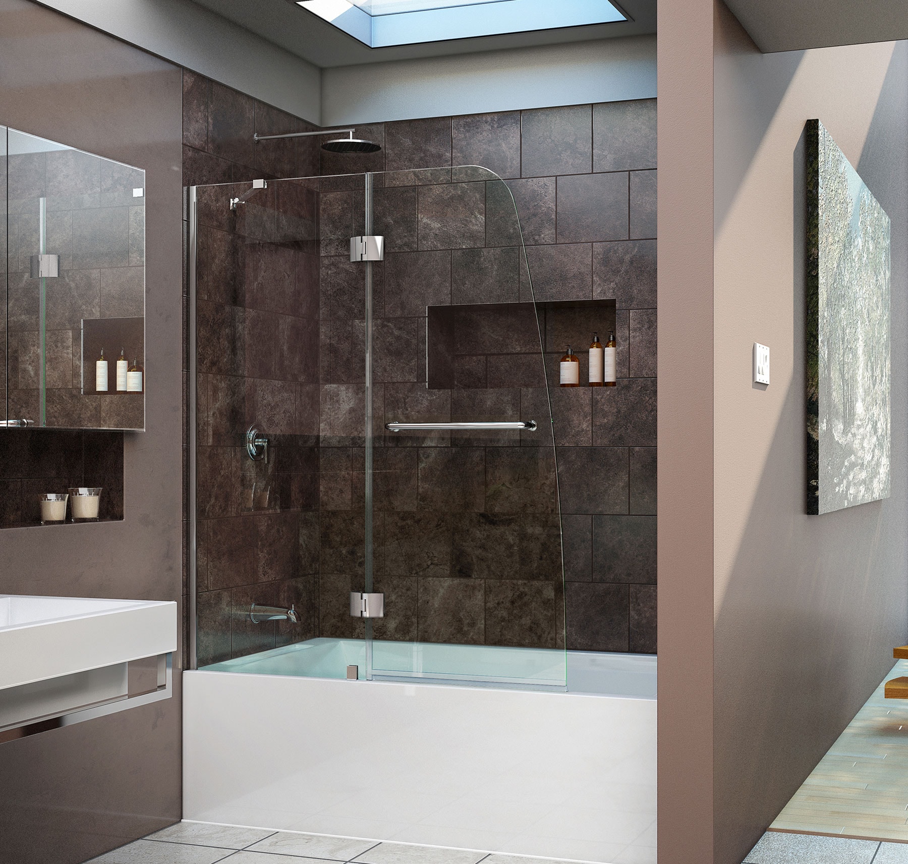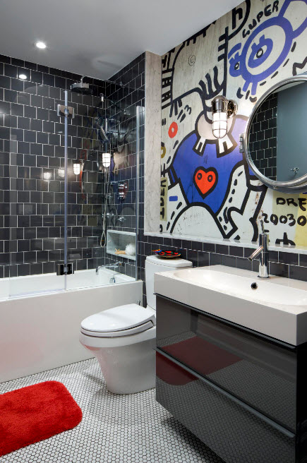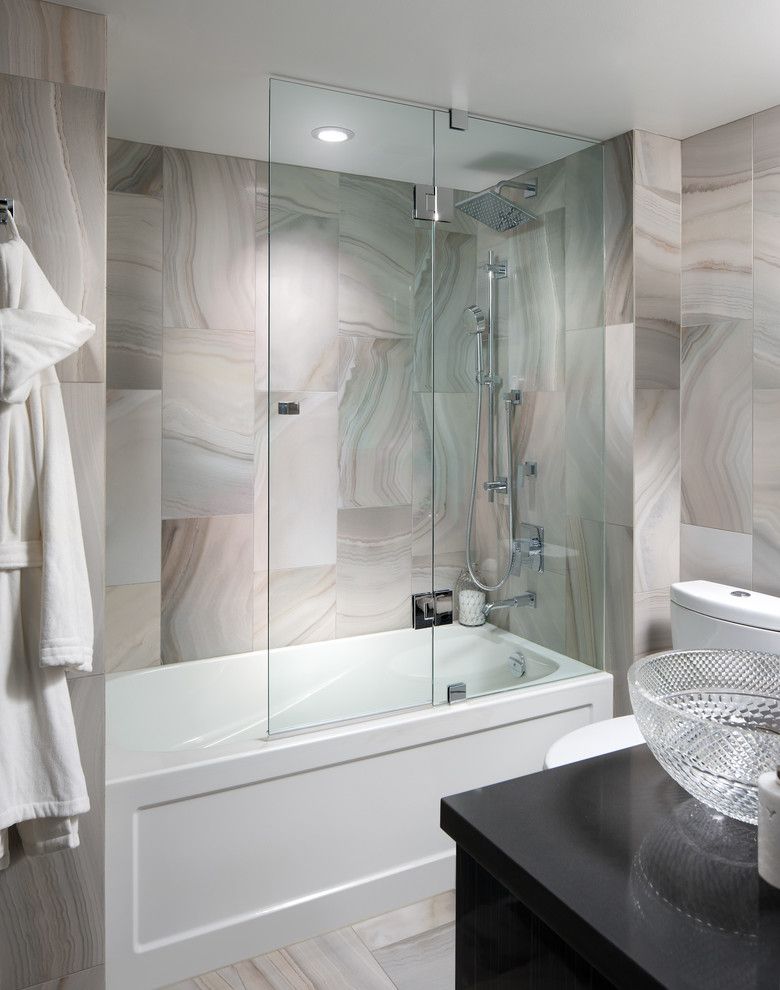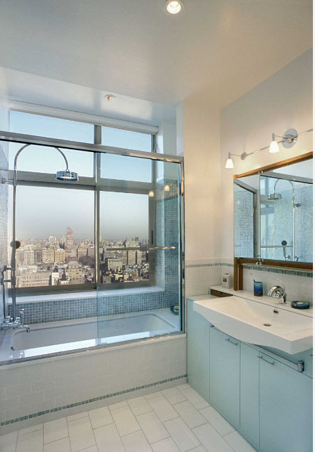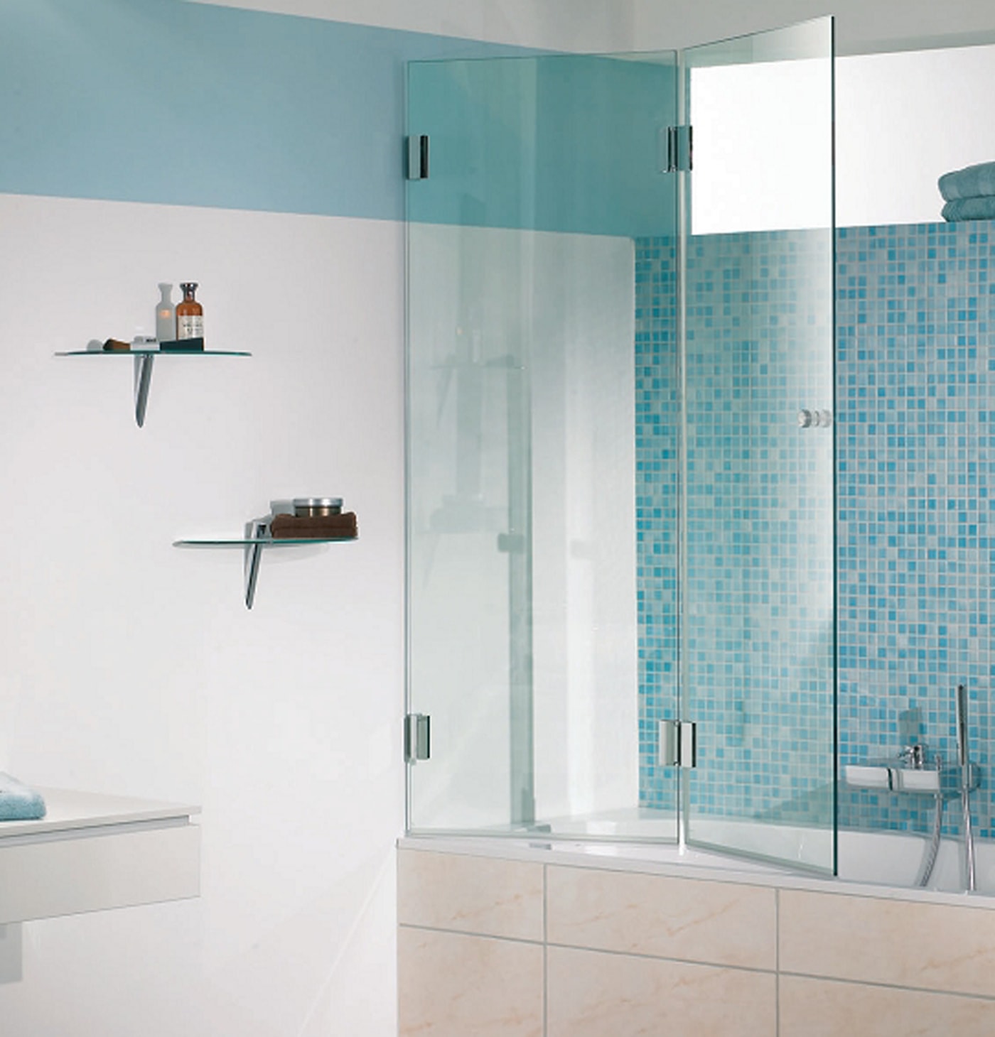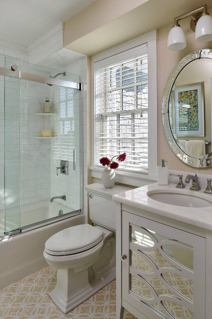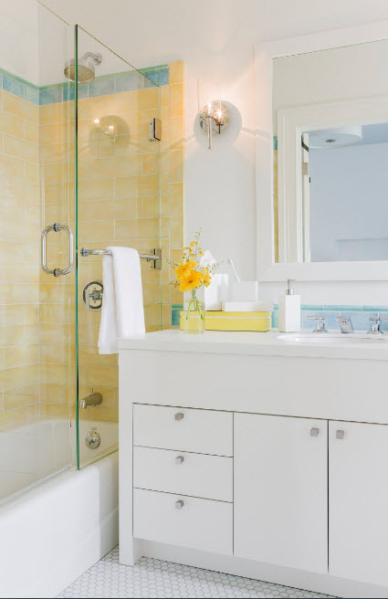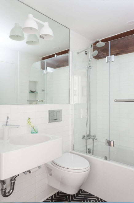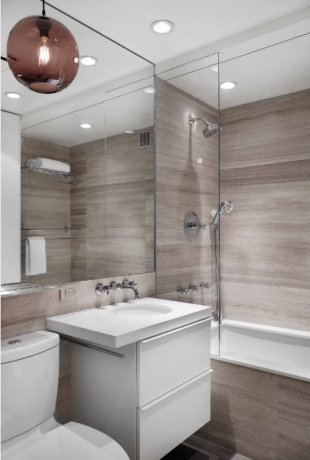 Los diseños transparentes son ideales para bañeras pequeñas. Si se combina el baño, las pantallas multicolores o con un acabado mate son las más adecuadas. Pero en este caso se requiere iluminación adicional.