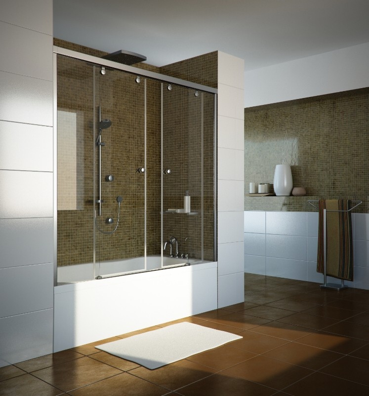 - Deslizante: la opción más preferida. Esta pantalla consiste en pinturas que se mueven a lo largo de las guías. El material adecuado para ella es plástico, vidrio. Adecuado para cualquier habitación, incluso una pequeña, y las bañeras pueden ser semicirculares o rectas.
