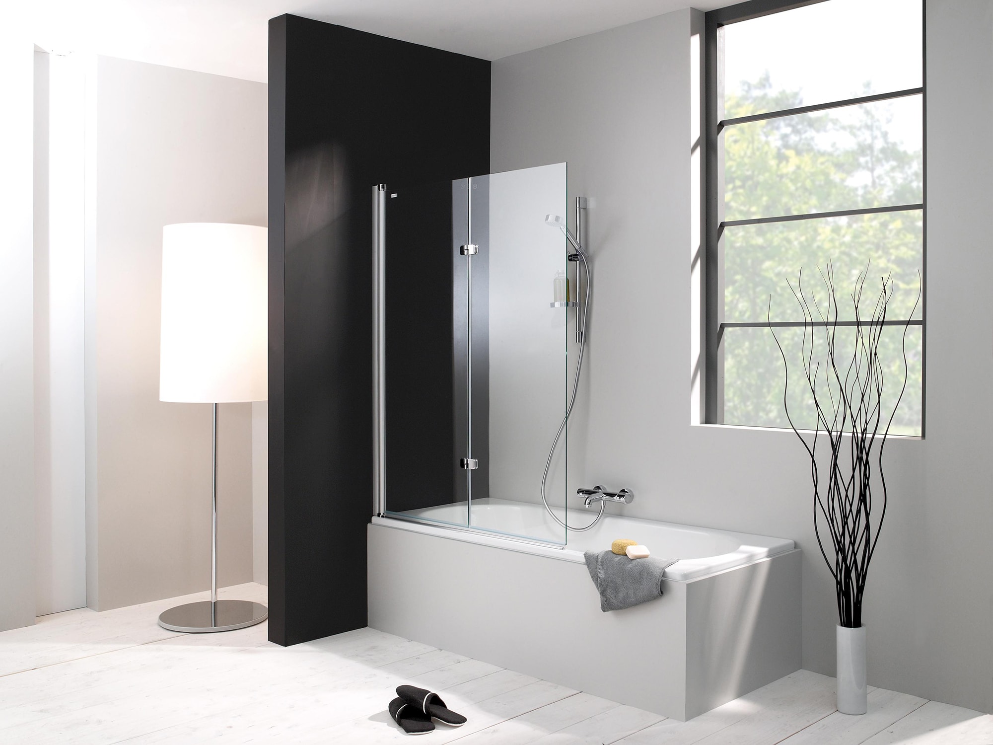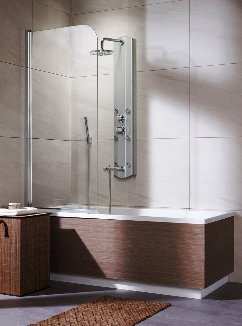 Una pantalla no solo protege las paredes, los pisos y los muebles del agua, sino que también decora eficazmente cualquier interior.