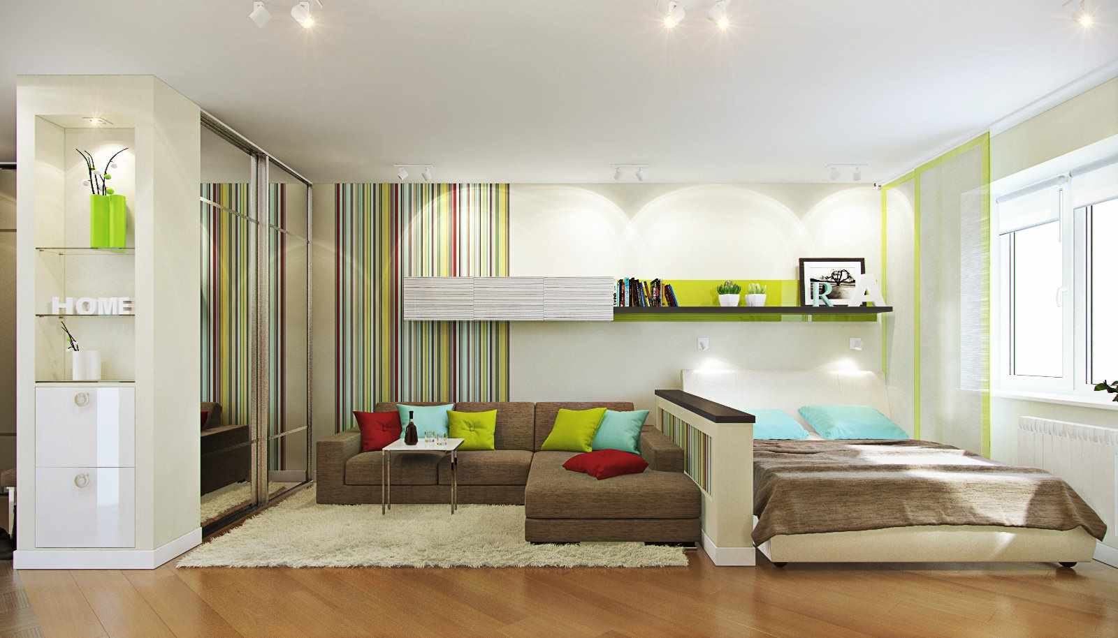 Le style de l'intérieur n'est pas seulement un hommage à la mode, c'est une manière de s'exprimer à travers l'espace environnant. Les personnes qui passent beaucoup de temps dans un environnement émotionnel bruyant choisissent un intérieur calme et discret.Ceux qui sont seuls et manquent d'impressions les compensent par le design lumineux et expressif de la pièce de 16 mètres, conçue comme un salon-chambre.