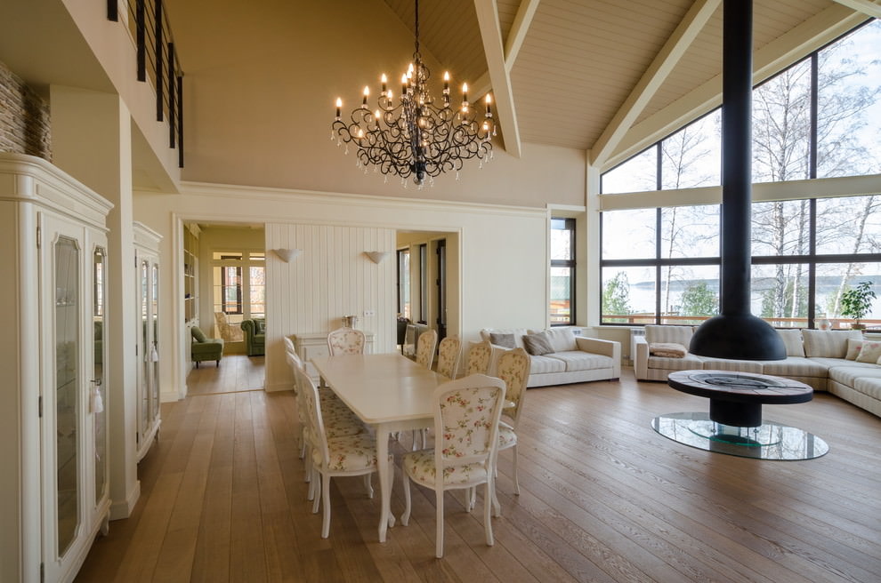 Dans ce style, les teintes pastel habituelles sont le plus souvent utilisées, et ces dernières années, les teintes telles que la pistache, l'olivier et le bleuet sont devenues populaires.Dans ce style, il est nécessaire d'appliquer plusieurs couleurs vives et contrastées à l'intérieur, qui mettent en valeur les nuances claires et ajoutent leurs notes extravagantes. Un tel style moderne aura fière allure non seulement dans l'appartement, mais aussi dans une maison de campagne.