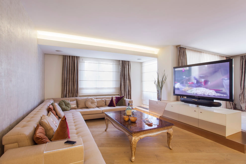 Les plafonds tendus augmentent visuellement l'espace et ajoutent de la brillance à l'intérieur.