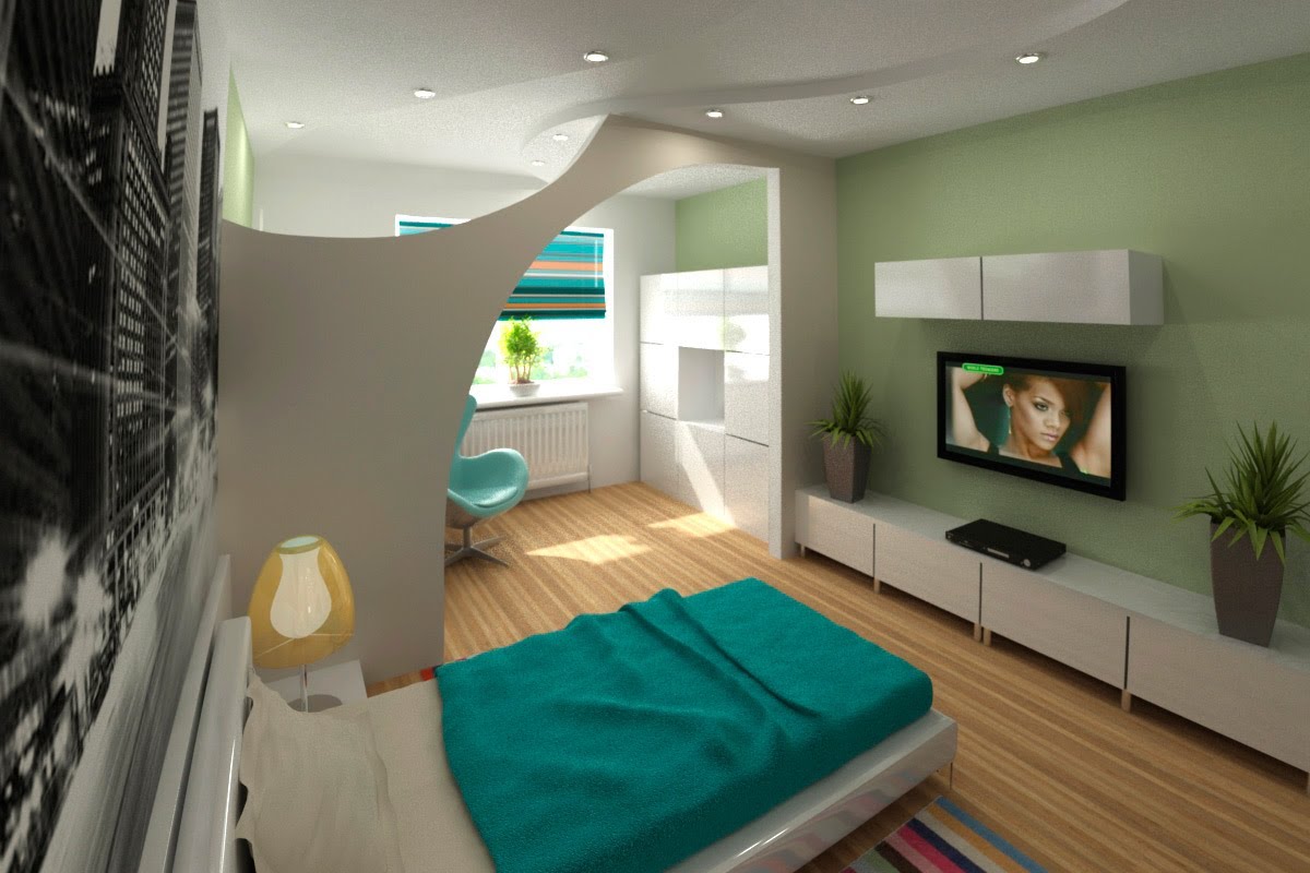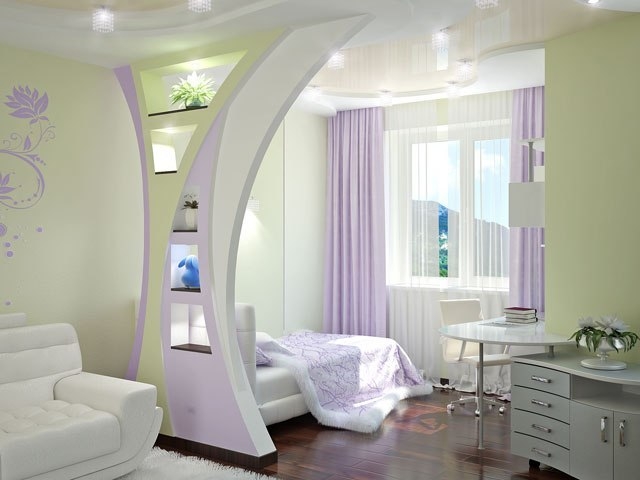 Le zonage implique la séparation d'un lit d'une séparation artificielle commune (parties de murs, armoires, étagères, etc.). Le zonage visuel est l'attribution de certaines zones avec d'excellentes couleurs, contrastant fortement les unes avec les autres.