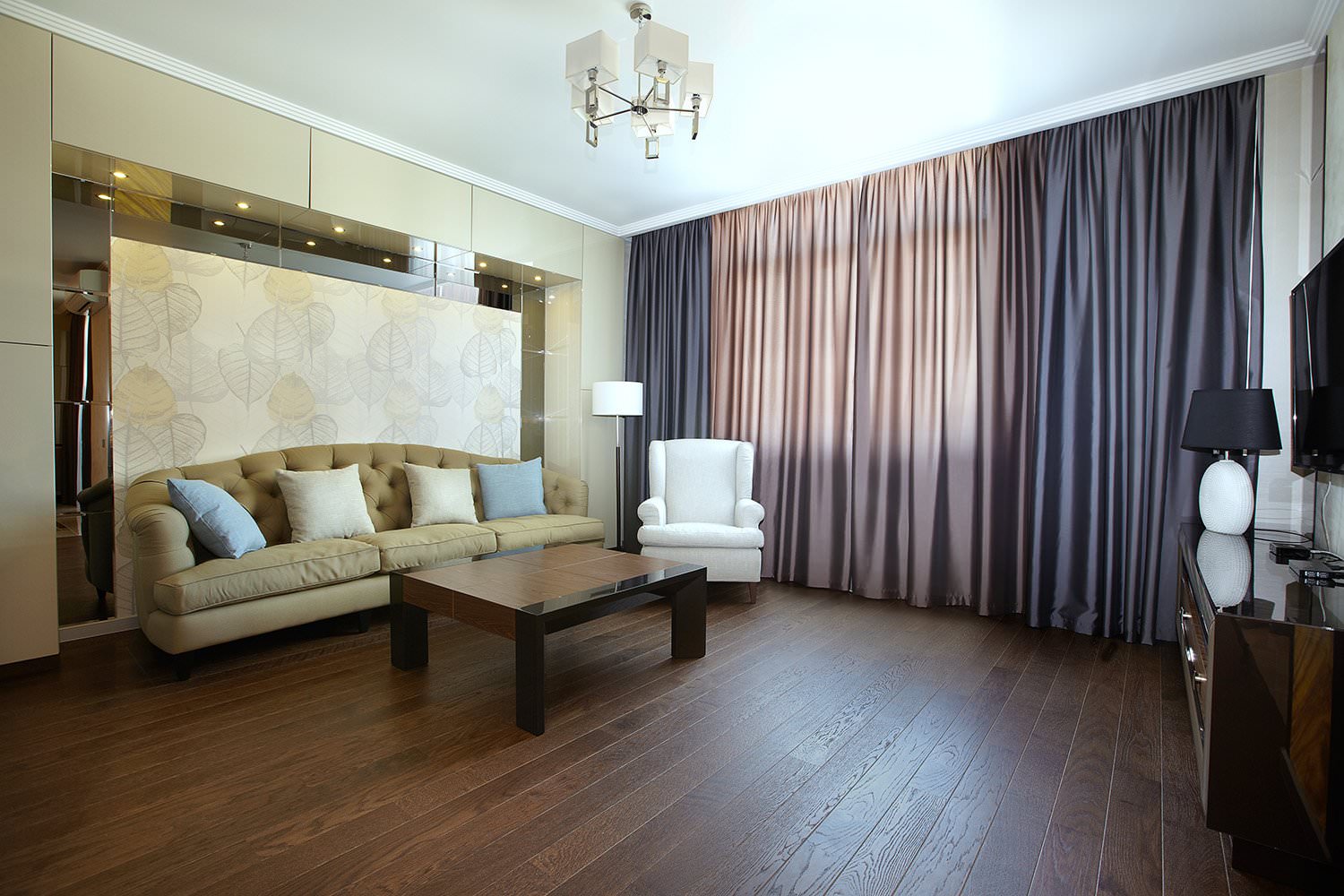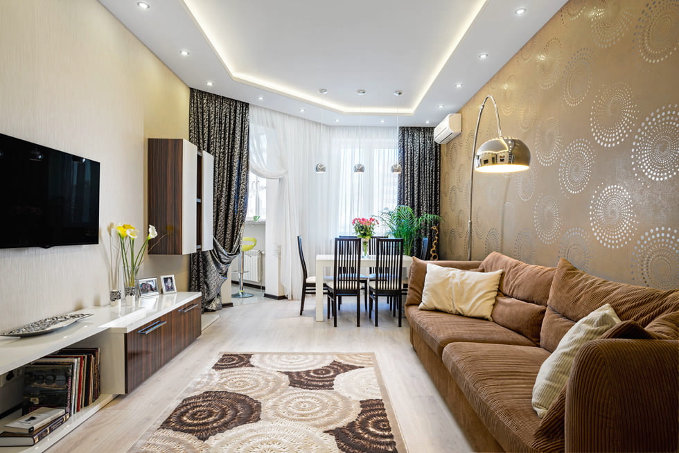Un design de rideau correctement sélectionné pour le salon rafraîchit la pièce et attire l'attention.