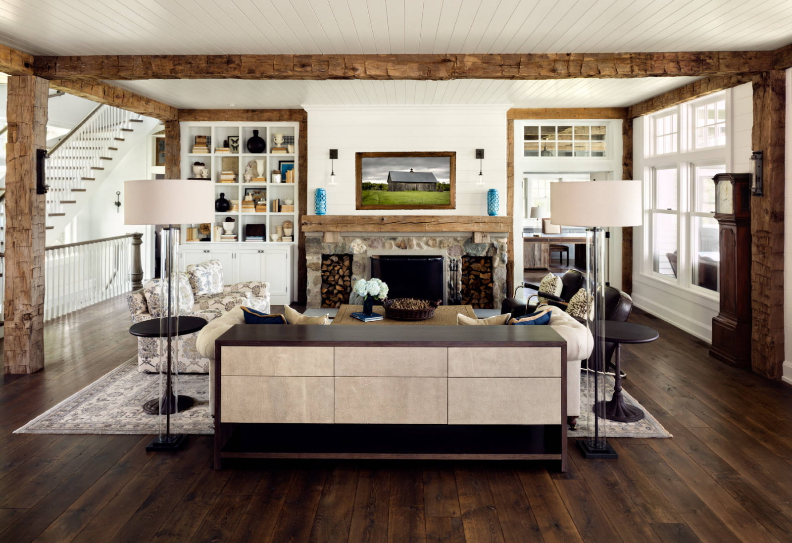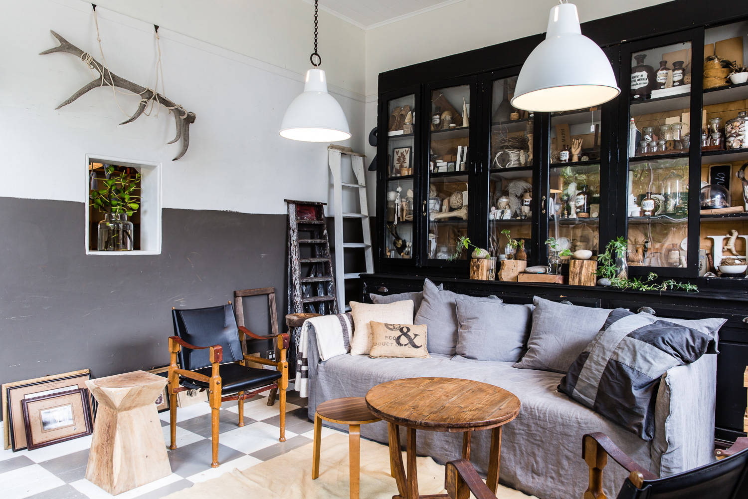Un exemple de l'éclairage varié d'un salon au moyen de différents types de lampes