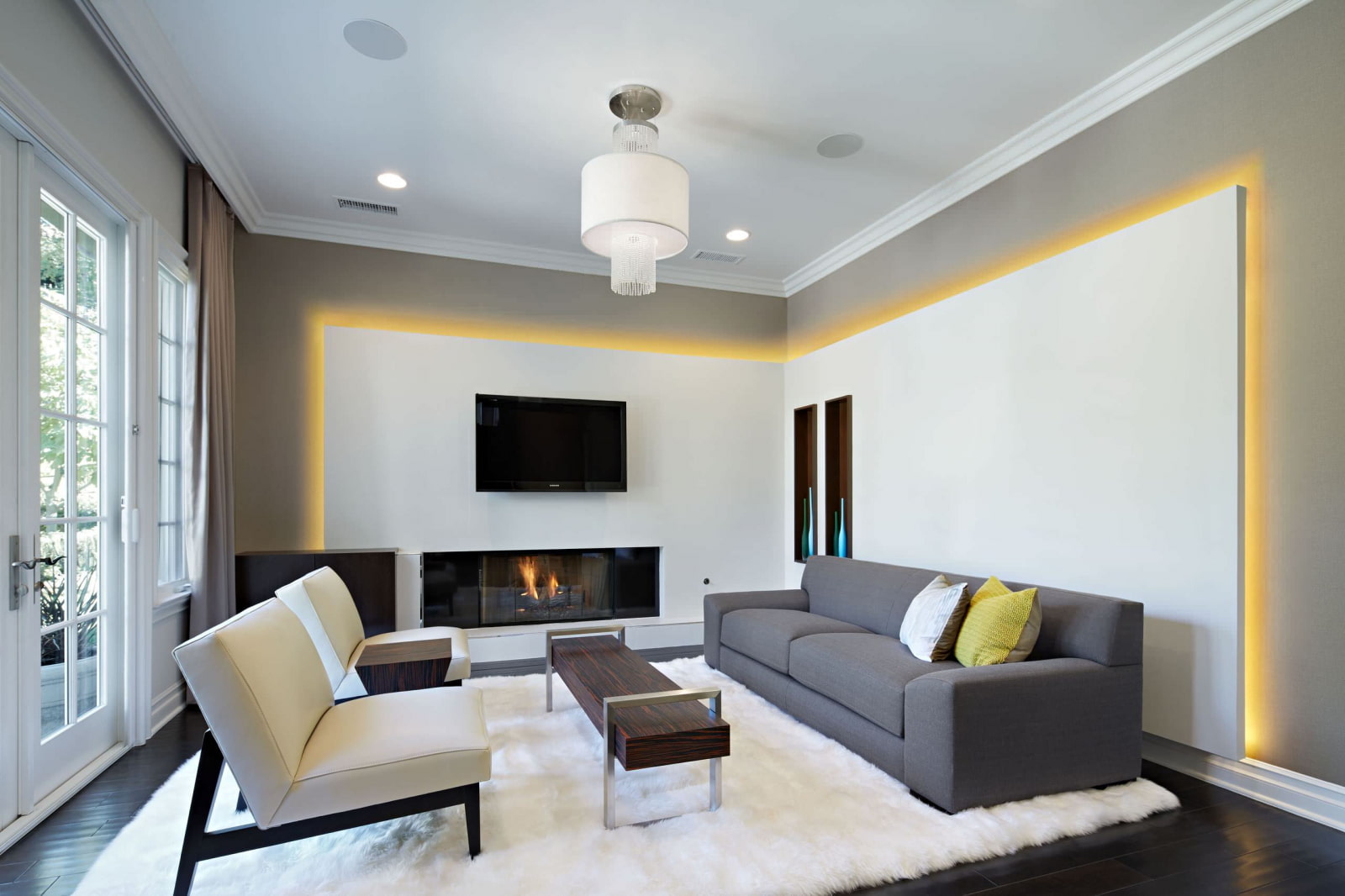 - Exemples d'organisation de l'éclairage dans le salon, photo
