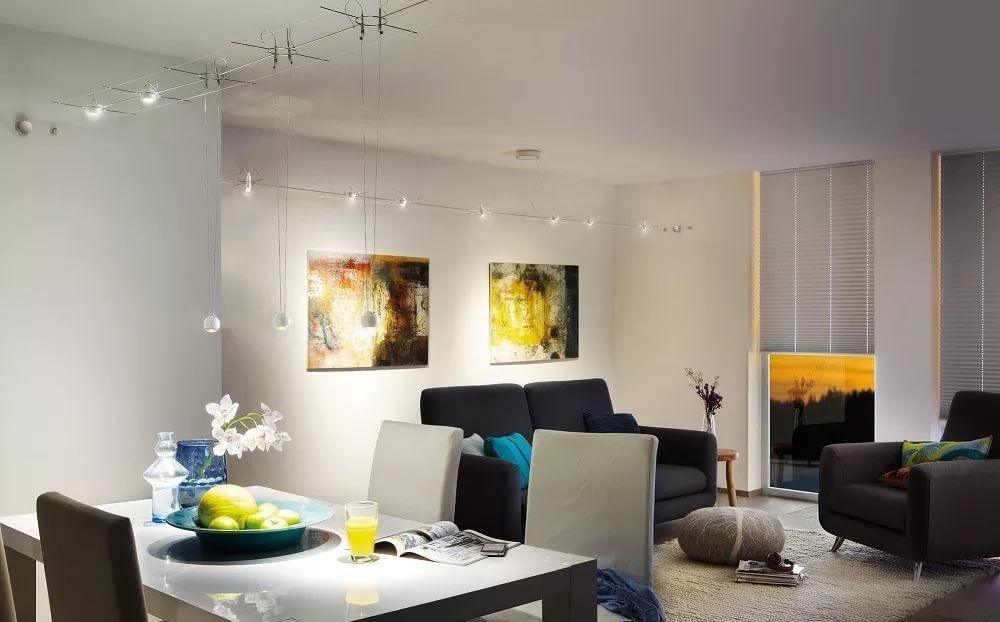 Les variations d'éclairage des pièces à vivre diffèrent également selon les types de pièces. Par exemple, pour un appartement ordinaire avec des murs en pierre, le câblage interne et presque tous les luminaires conviennent.