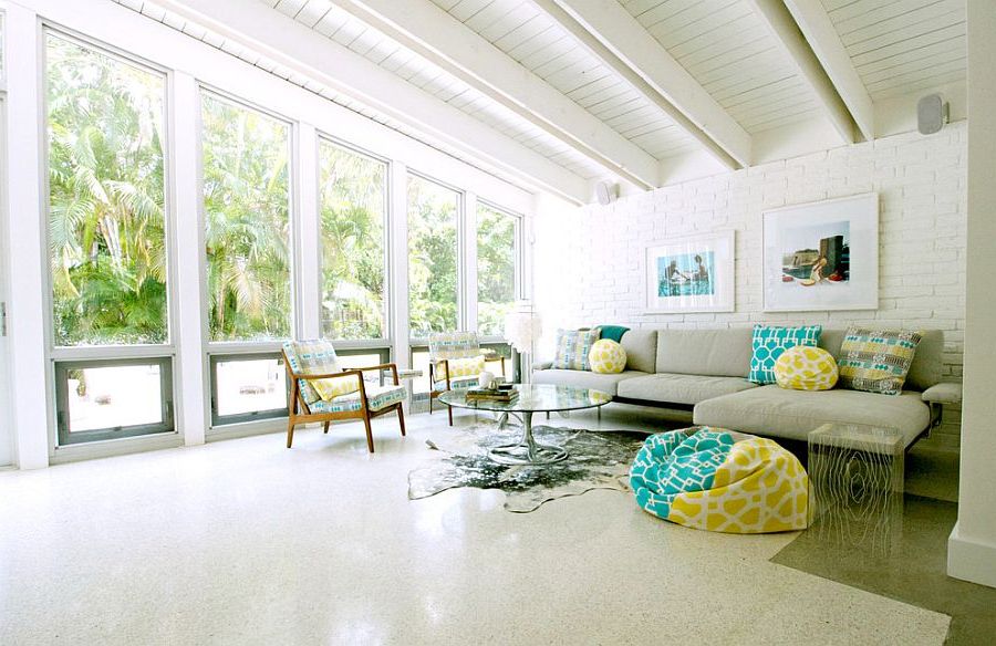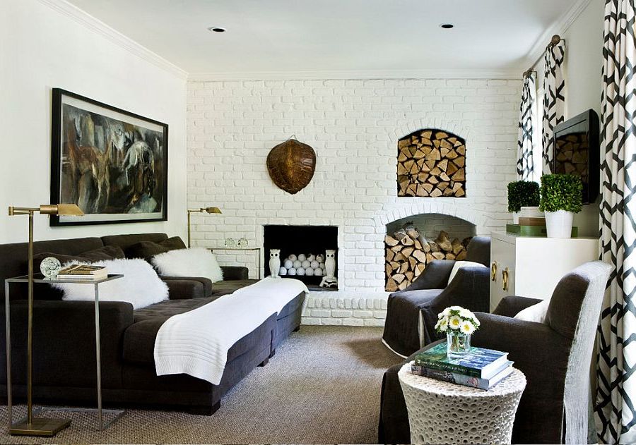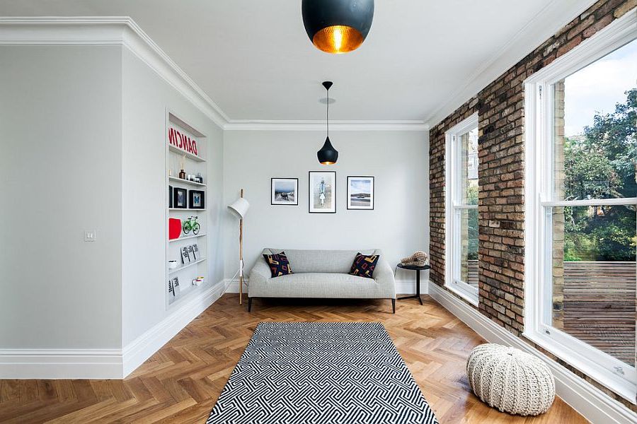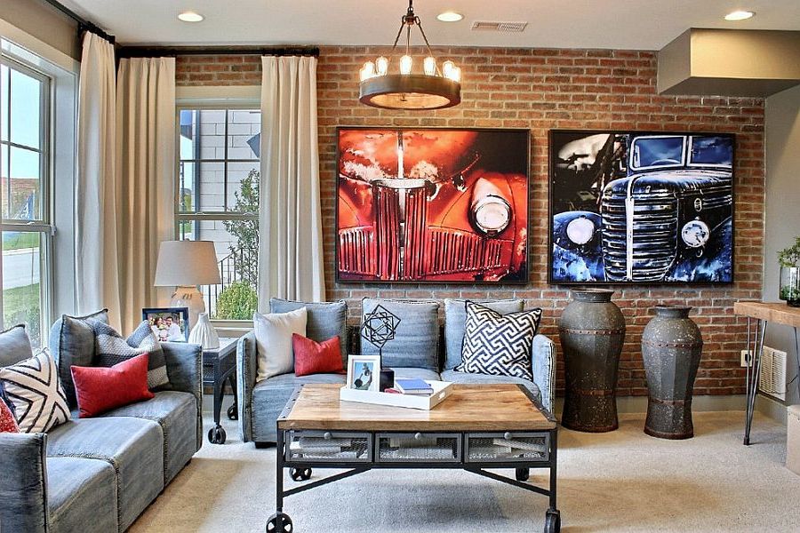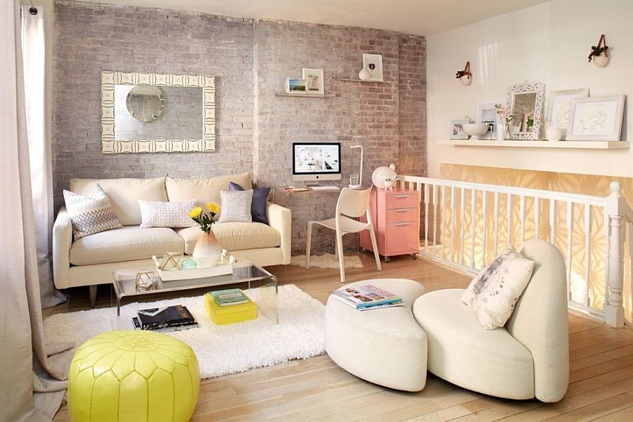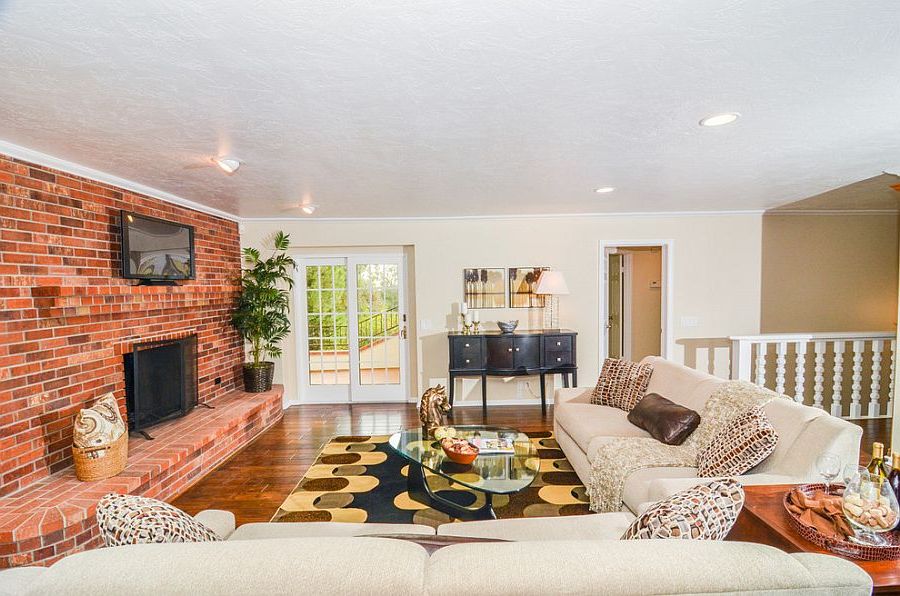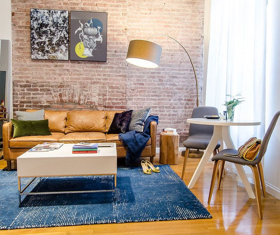 Un salon avec des murs de briques peut devenir beaucoup plus attrayant visuellement, et les meubles de couleurs neutres deviendront plus visibles.