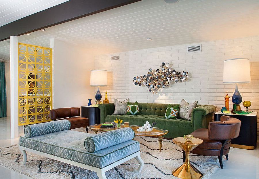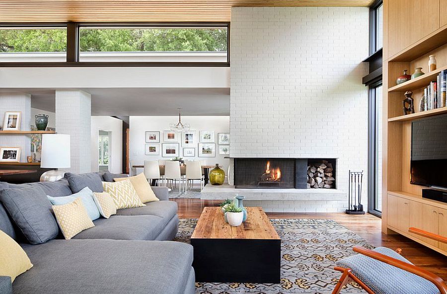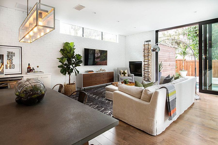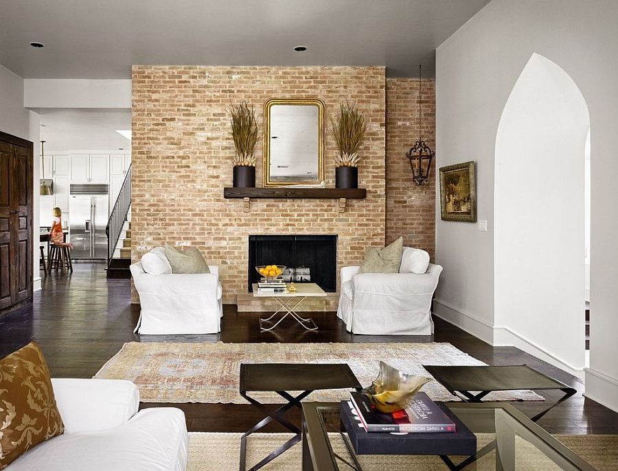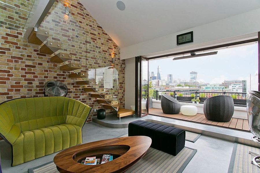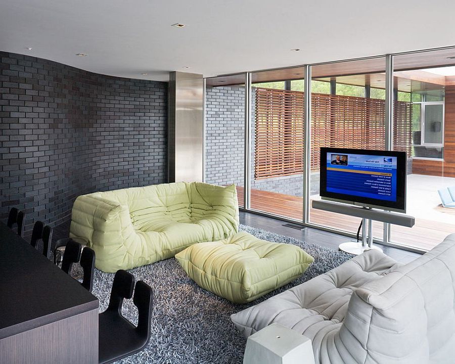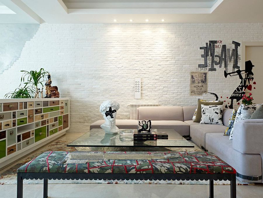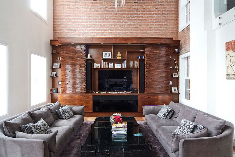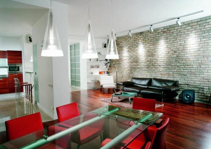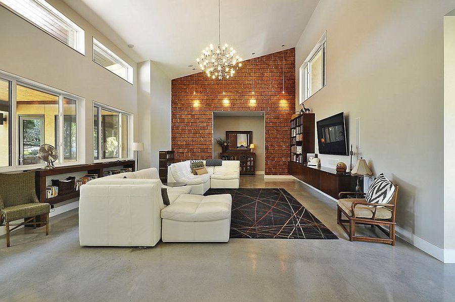 La présence d'un mur de briques dans le salon est une manifestation d'individualité et d'élégance, par opposition à des intérieurs déjà ennuyeux avec une prédominance de finitions en verre et en pierre.