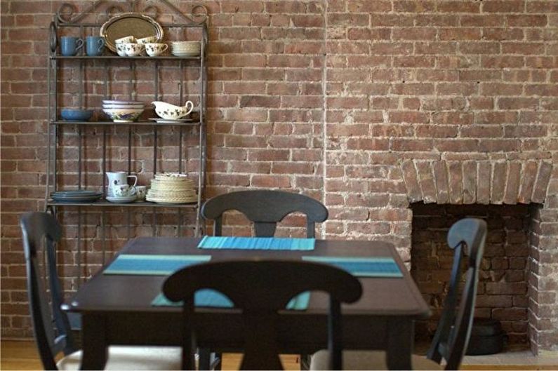 La brique rouge est la plus courante. Il est choisi dans différentes nuances, allant de l'orange clair au brun-brun. Il véhicule l'idée d'un loft et l'esprit du temps où les gens peuplaient les installations de production. Malgré cela, la brique blanche continue d'être un élément du minimalisme, du pays, de la Provence et du style scandinave.