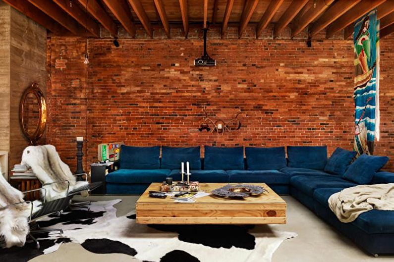 Le mur de briques dans le salon est devenu la marque du loft, une manifestation de l'extravagance et du goût non trivial des propriétaires de la maison. Le design, né dans les années 40 du XXe siècle, continue de conquérir une armée de fans. Malgré sa simplicité, la zone industrielle-urbaine est l'un des types de décoration les plus chers des locaux d'habitation.