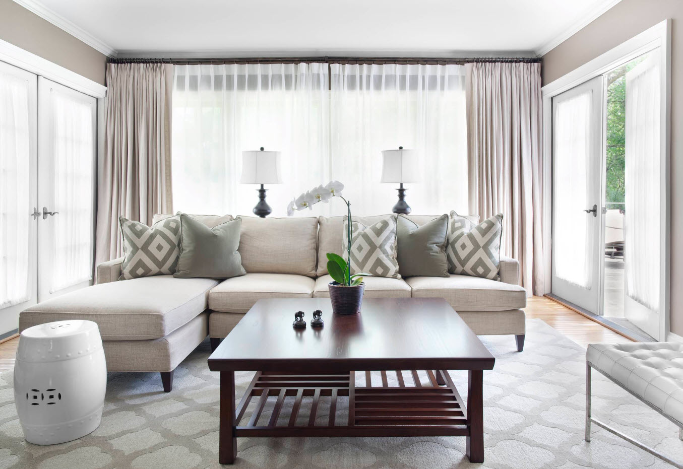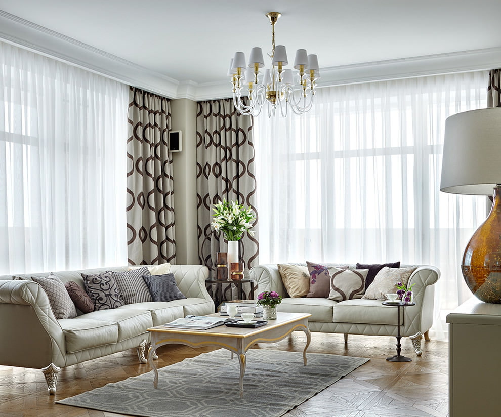 La combinaison de rideaux lumineux et de rideaux occultants dans le salon de style moderne