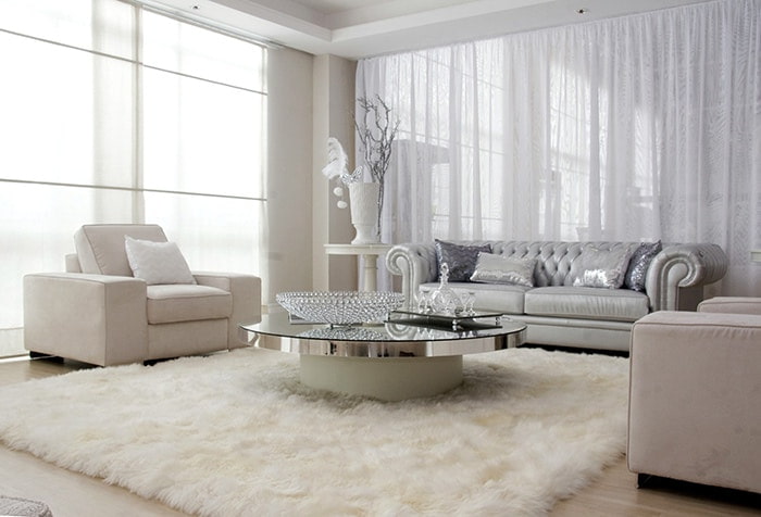 Tulle blanc - une solution classique pour créer un fond neutre pour le reste de l'intérieur