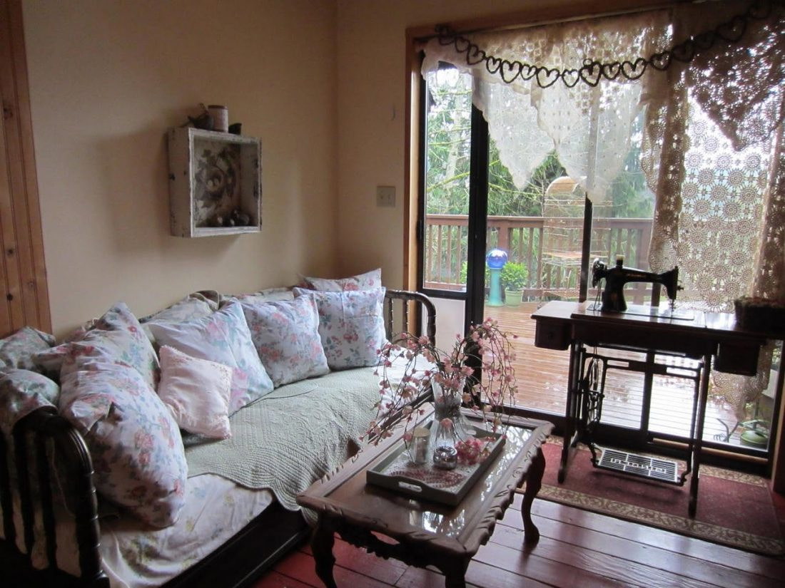 Pour la décoration des fenêtres dans un style rustique, un tulle blanc transparent avec un imprimé discret convient