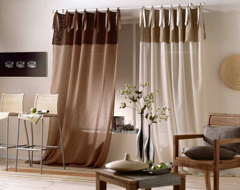 - Marron. Les rideaux laiteux, blancs ou crème s'harmonisent avec les nuances brunes des murs, en fonction de la saturation de la couleur chocolat.