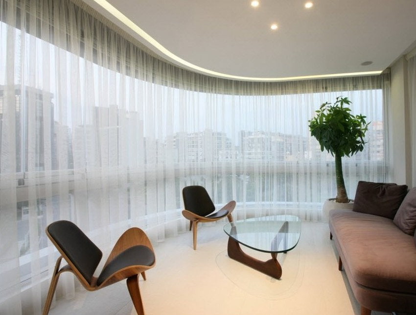 - Chevauchement de visibilité. Le tissu, bien que translucide, mais il ne vous permet pas de voir pleinement la beauté du paysage à l'extérieur de la fenêtre.