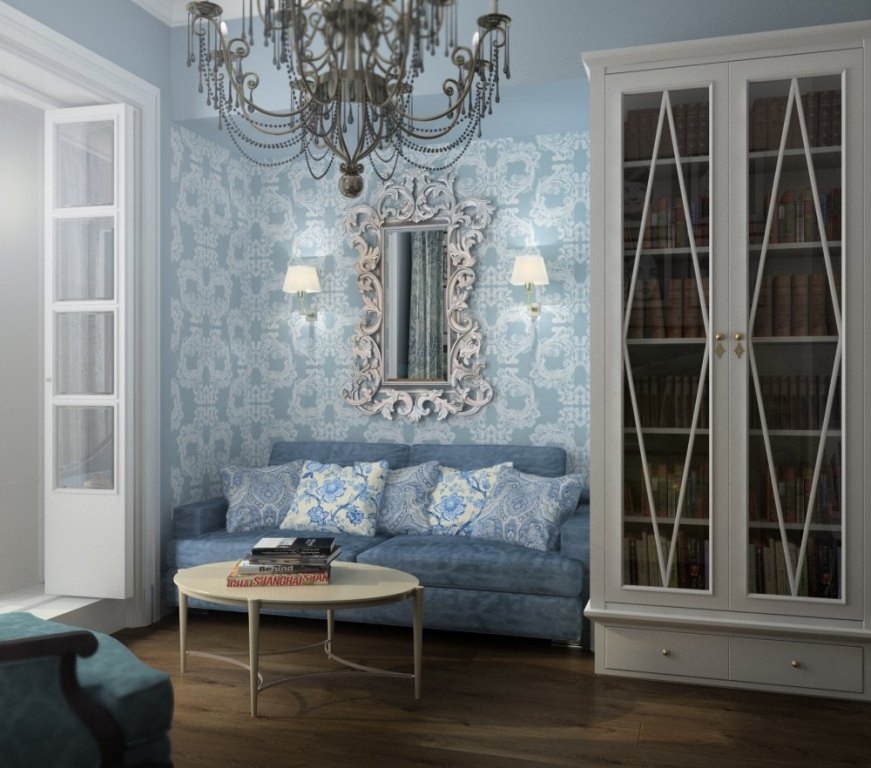 Le papier peint de couleur bleue peut être choisi pour n'importe quel style d'intérieur