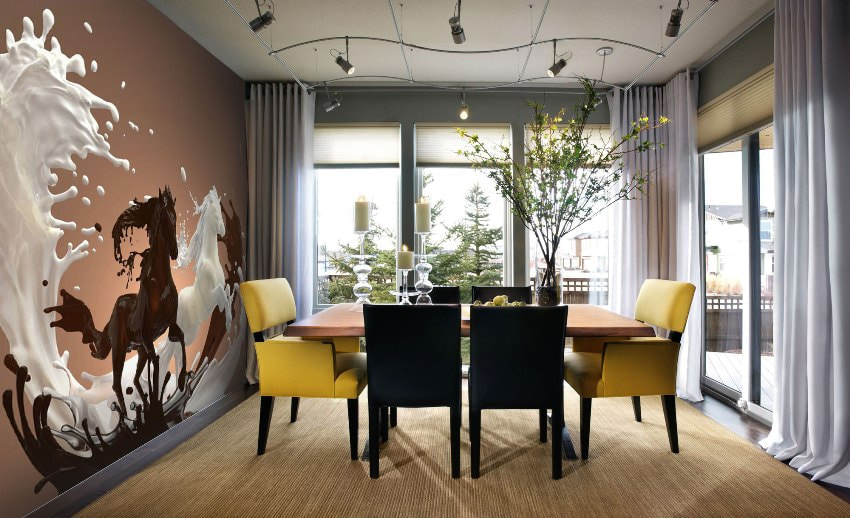 La couleur noire, en particulier en combinaison avec le blanc, semble assez audacieuse et non standard. Assurez-vous que cela aide à visualiser des photos de papier peint en noir et blanc à l'intérieur d'une pièce moderne. Mais il convient de rappeler que cette couleur masque considérablement l'espace, vous ne devez donc pas en ajouter trop dans les petites pièces.