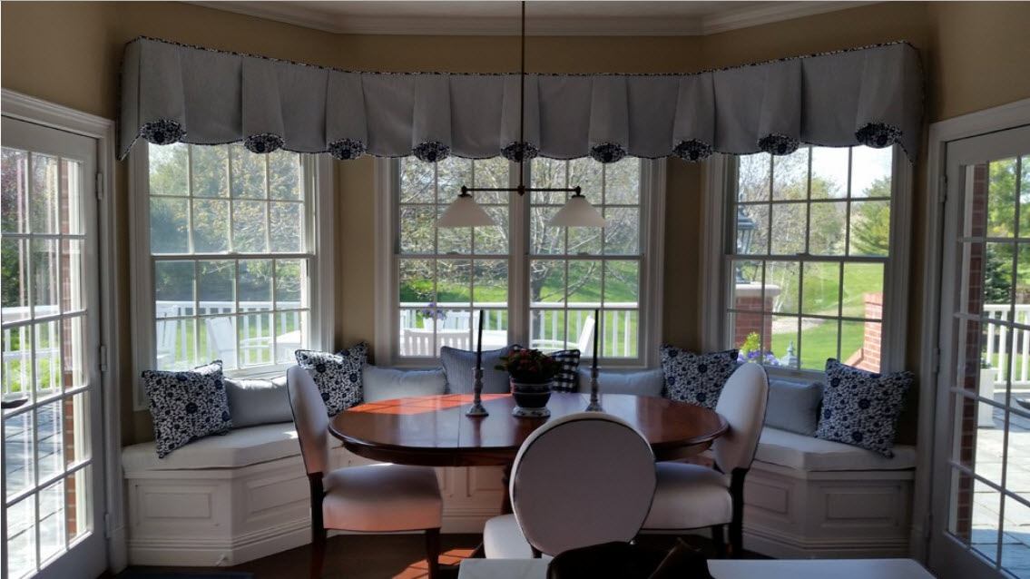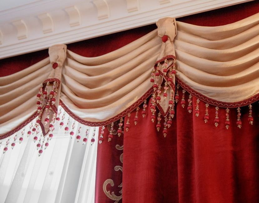 - Pour fabriquer un lambrequin, utilisez des tissus de texture et d'ombre similaires aux rideaux.