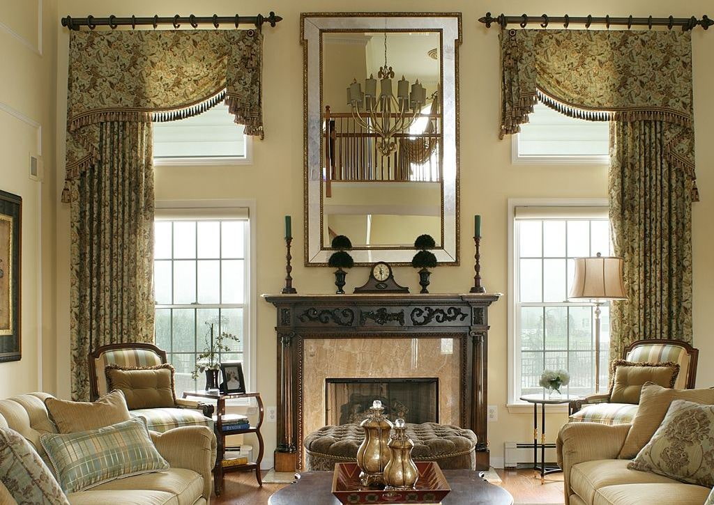 Vous pouvez faire un lambrequin comme sur la photo pour une salle avec des plafonds bas classiques.