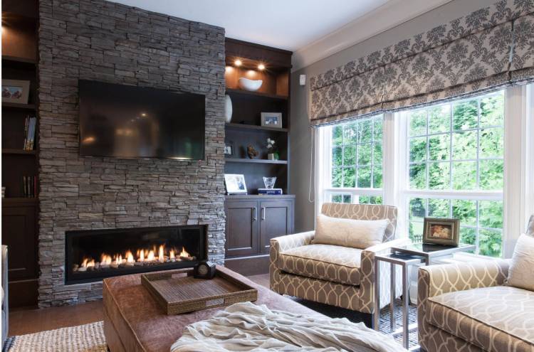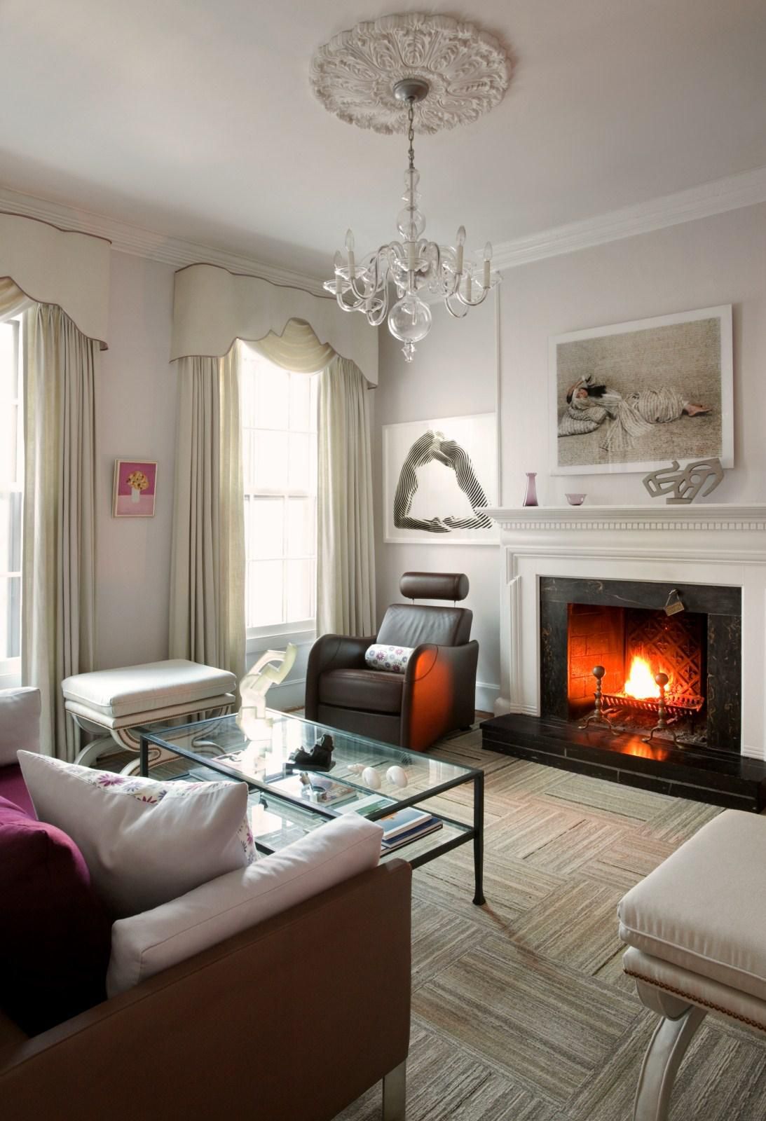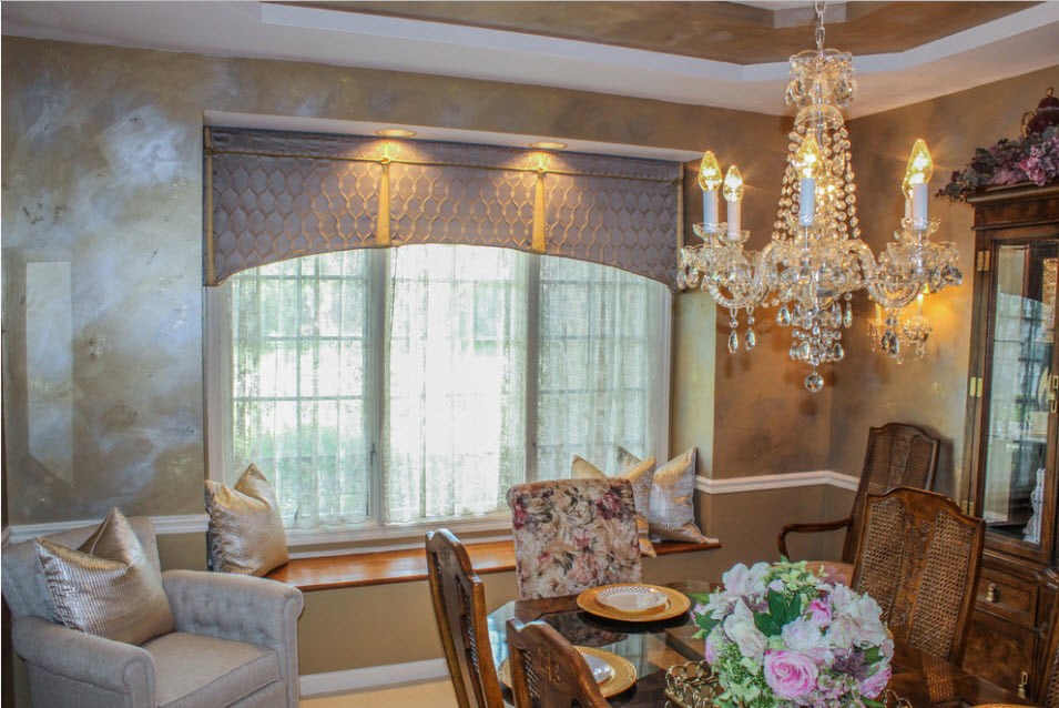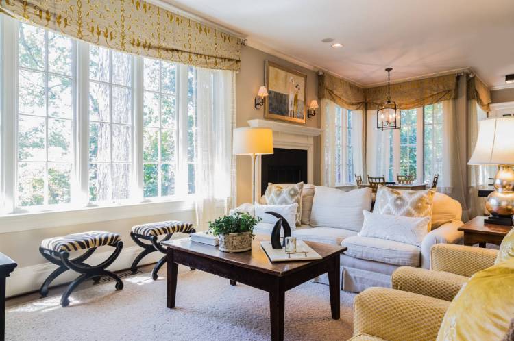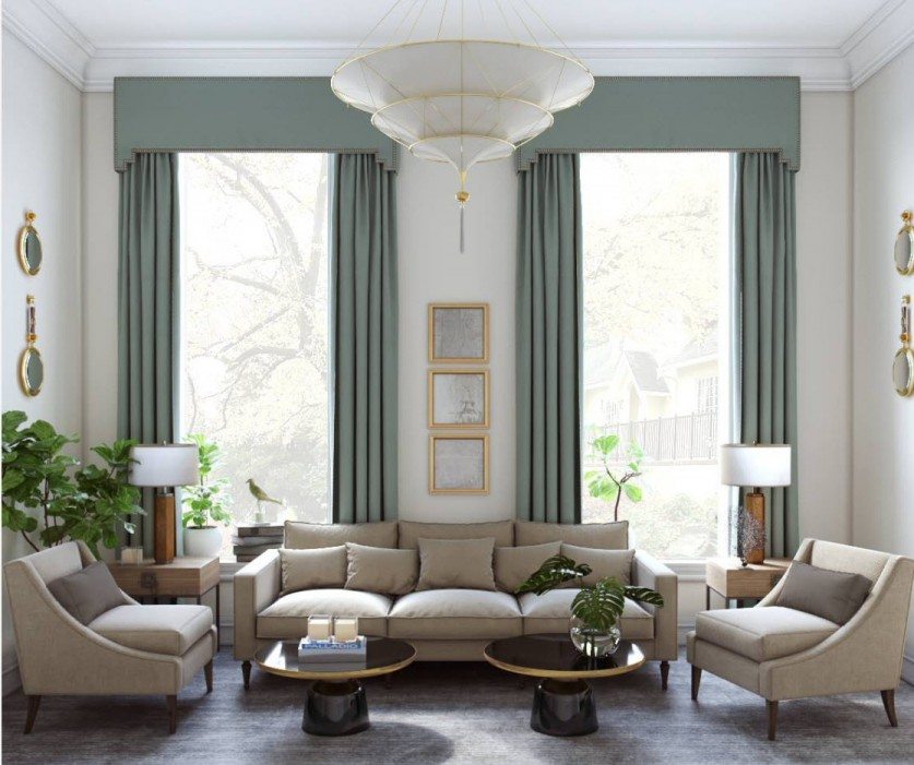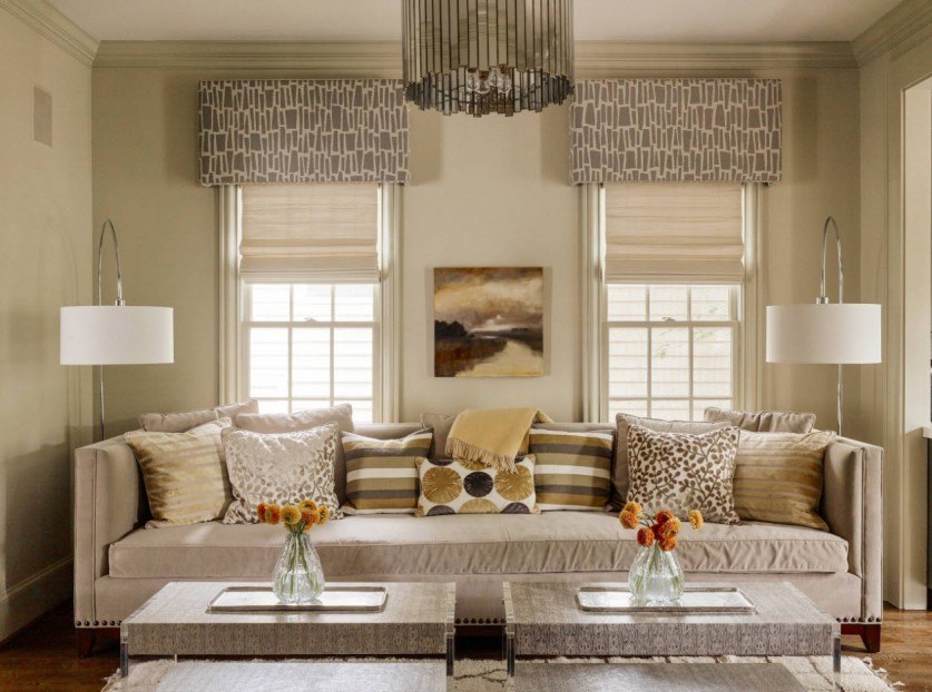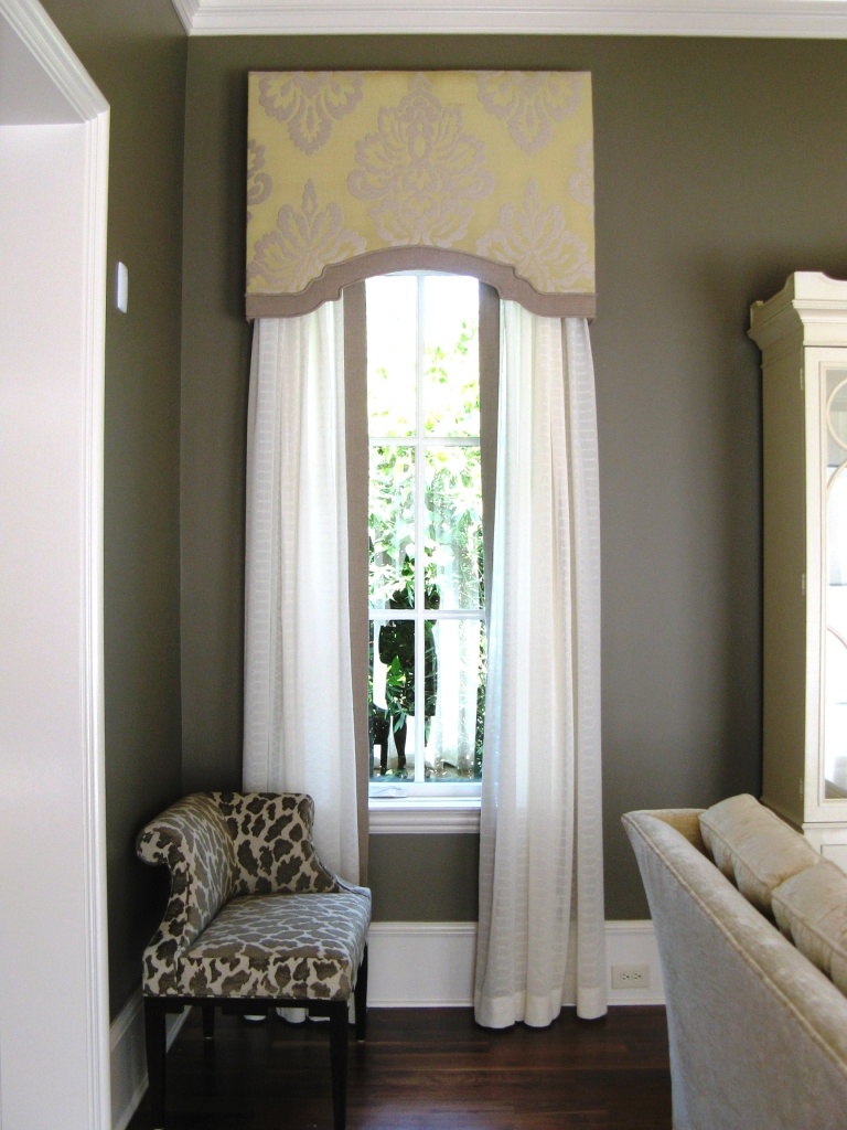 Un lambrequin court ne retardera pas la lumière du soleil et soulèvera visuellement le plafond bas