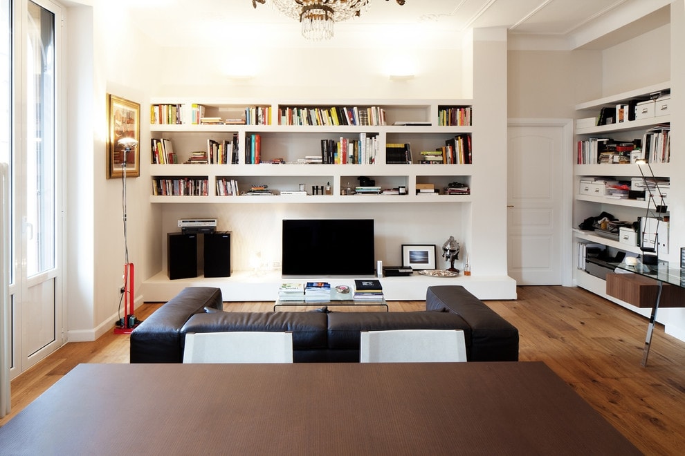 - Une autre solution de zonage courante est le podium. Parfait pour une pièce avec de hauts plafonds et une grande surface.