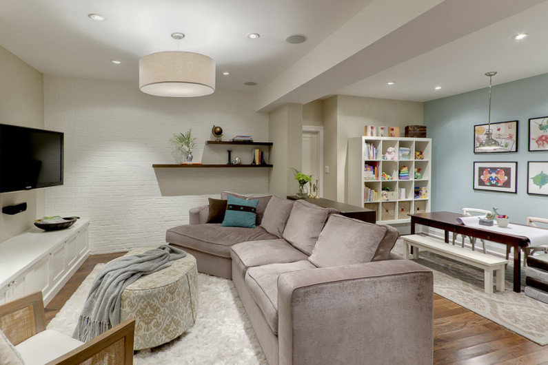 Avec un grand espace de la salle, vous pouvez également appliquer de tels styles: loft, ethno, scandinave, moderne et art déco. Dans ces styles, vous pouvez appliquer des solutions de design intéressantes qui rendront la pièce chaleureuse et confortable pour recevoir des invités et pour se détendre avec toute la famille. Des nuances douces de couleurs, une retenue à l'intérieur et des accessoires élégants ajouteront des notes intéressantes à la conception de la salle.