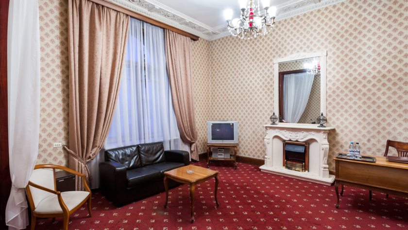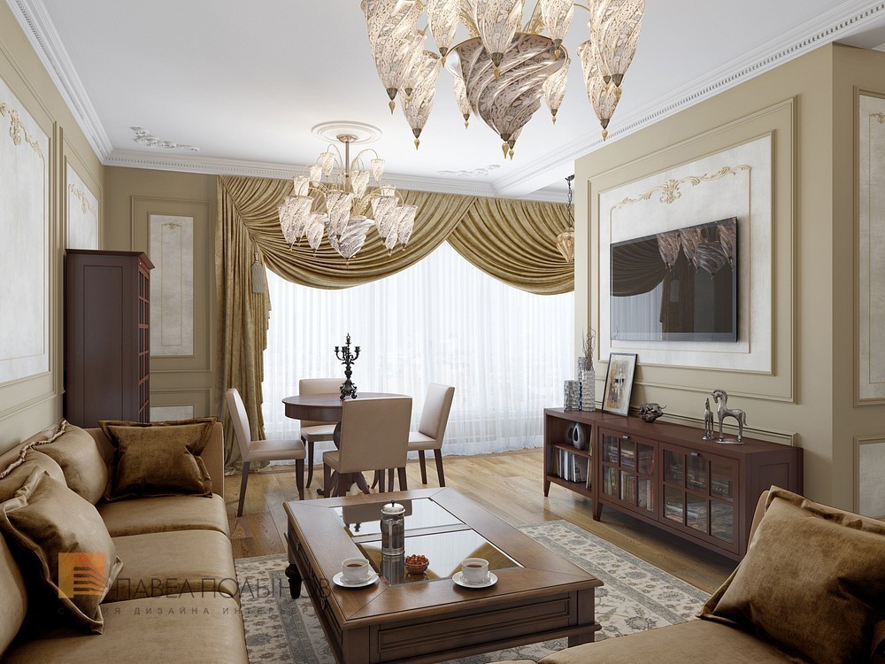 Un élément important du salon dans le style classique est une vraie cheminée ou son imitation habile