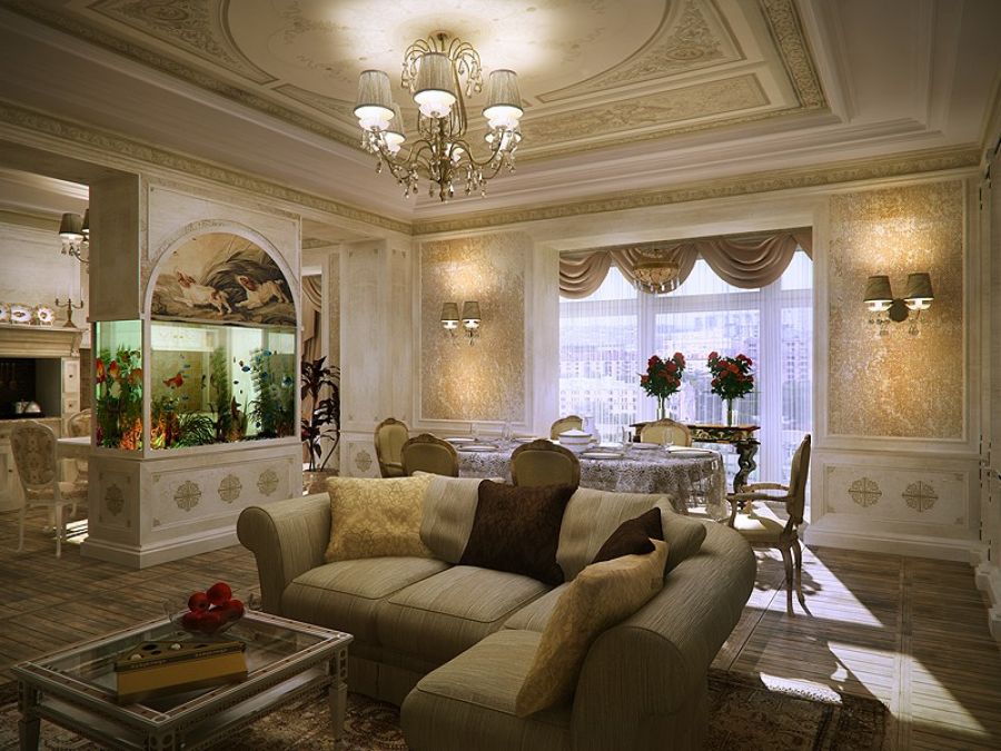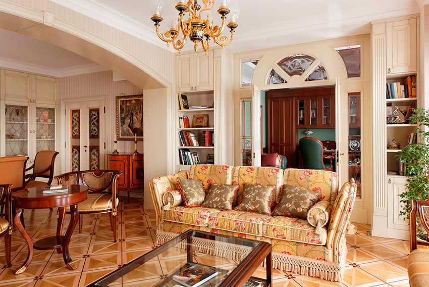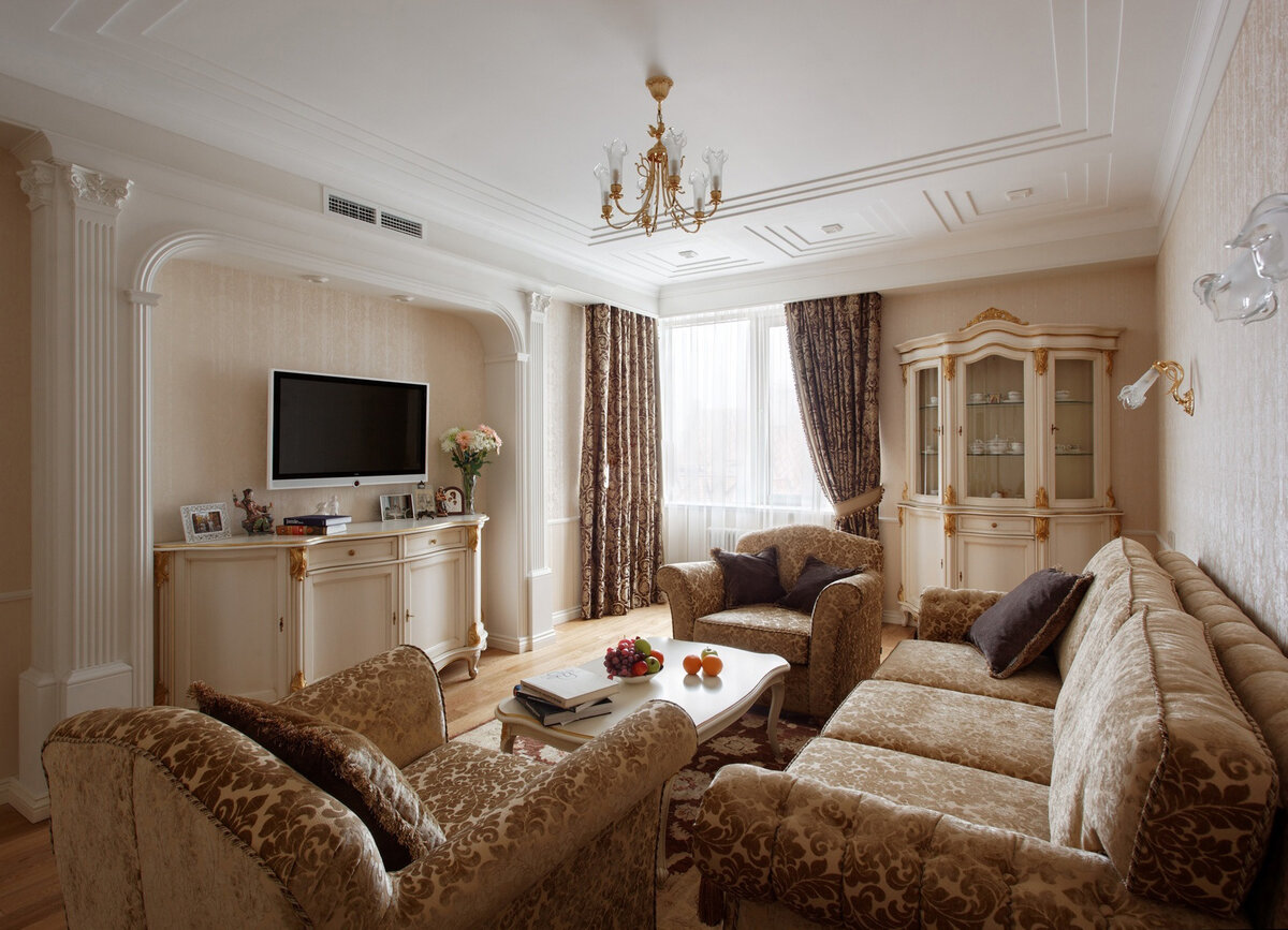 Les salons de style classique restent toujours à la mode et élégants. Dans le même temps, certaines règles de conception doivent être suivies afin de ne pas violer les principales traditions. Sinon, il ne sera pas possible d'obtenir l'effet souhaité. Une telle solution n'est pas bon marché, vous devez donc bien réfléchir à un budget.