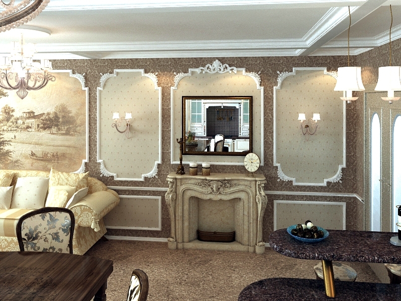 La zone de la cheminée, en règle générale, est composée d'une abondance d'éléments en stuc et de colonnes antiques. Ce style va bien avec le classique, donnant une touche spéciale et un attrait.