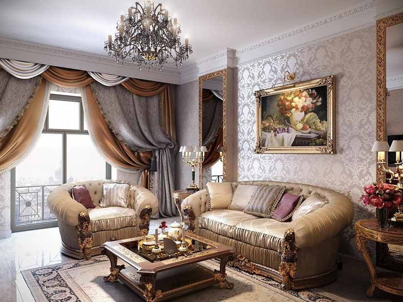 - l'utilisation d'articles d'intérieur luxueux - vases en cristal, chandeliers et autres éléments coûteux;