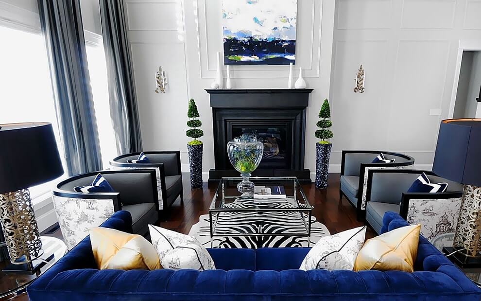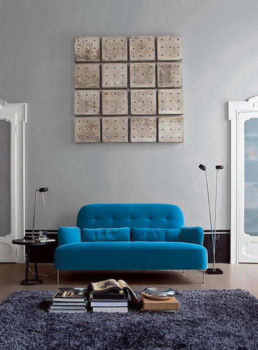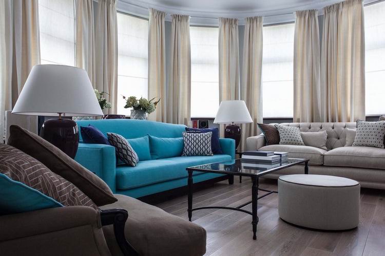 Les meubles de salon sont généralement de différentes couleurs. Considérez leur combinaison avec une teinte bleue: