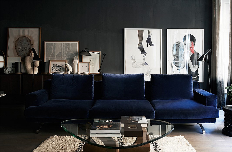 Le placement d'un canapé bleu doit se produire dans un intérieur décoré à partir de zéro. Dans le style existant, la tâche entraînera quelques difficultés.