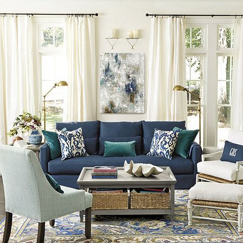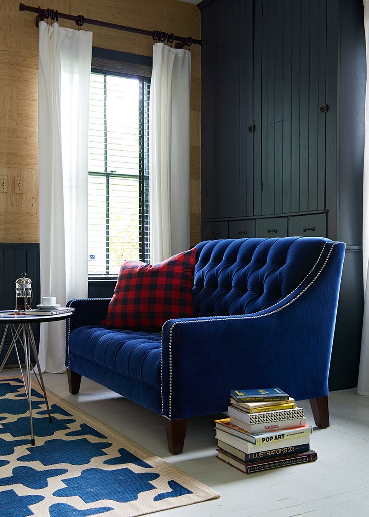 Le canapé bleu peut être entré dans différentes directions de style de l'intérieur du hall ou du salon