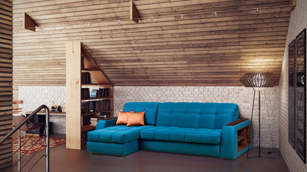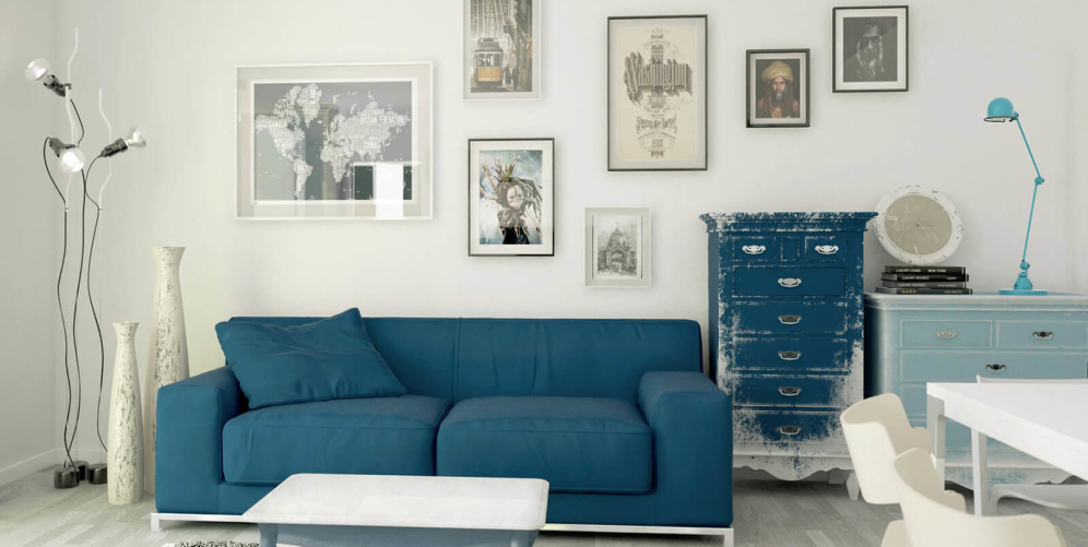 - Créer l'éclairage nécessaire pour une pièce avec un canapé bleu